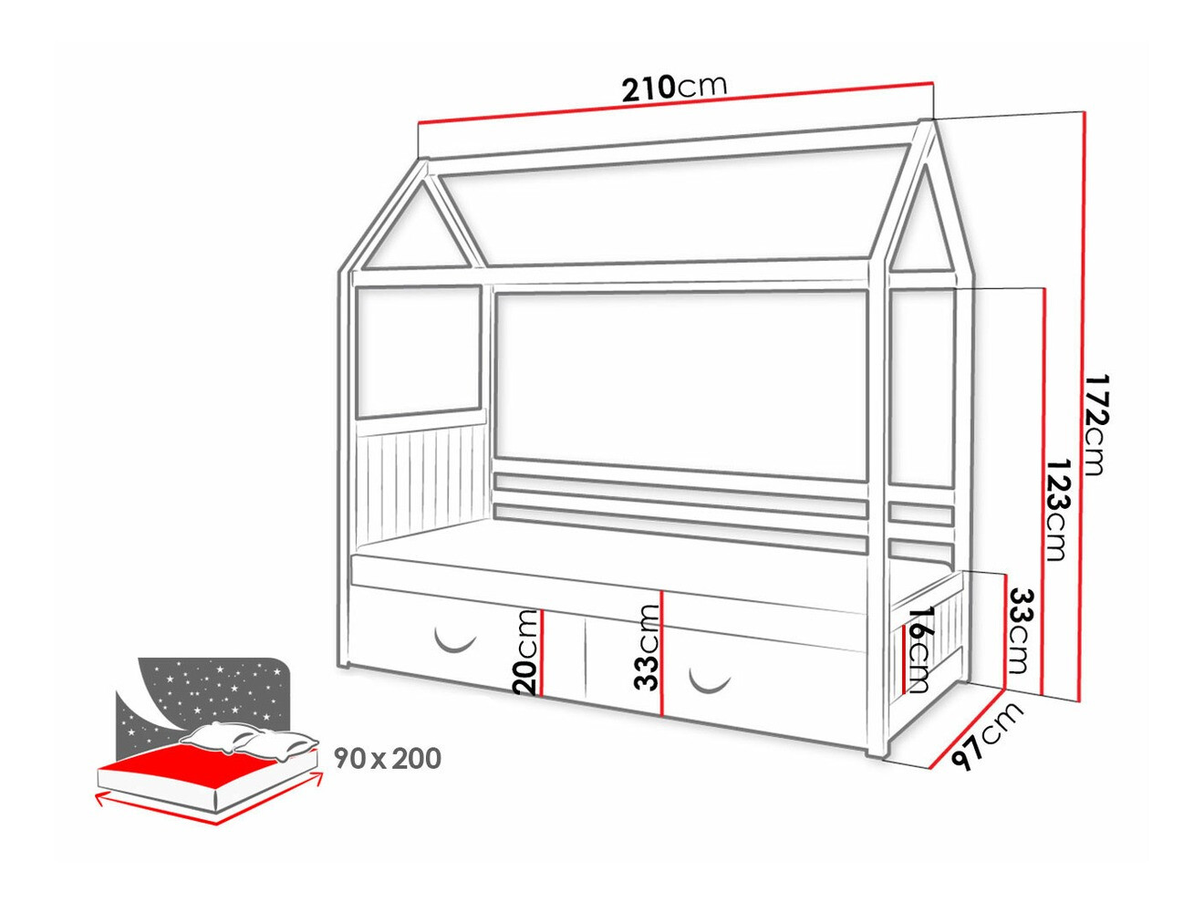 Prilagodeno za dušek 900 x 2000 mm