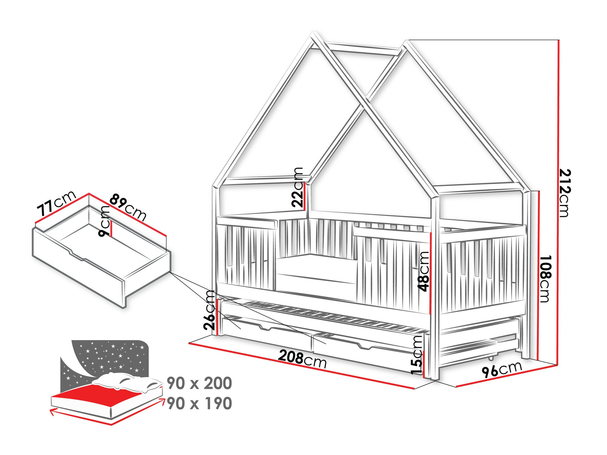 - 900 x 1900 mm