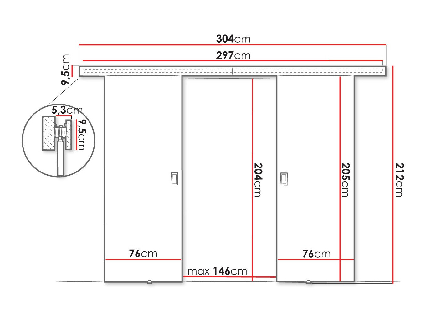Dimenzije sistema kliznih vrata: