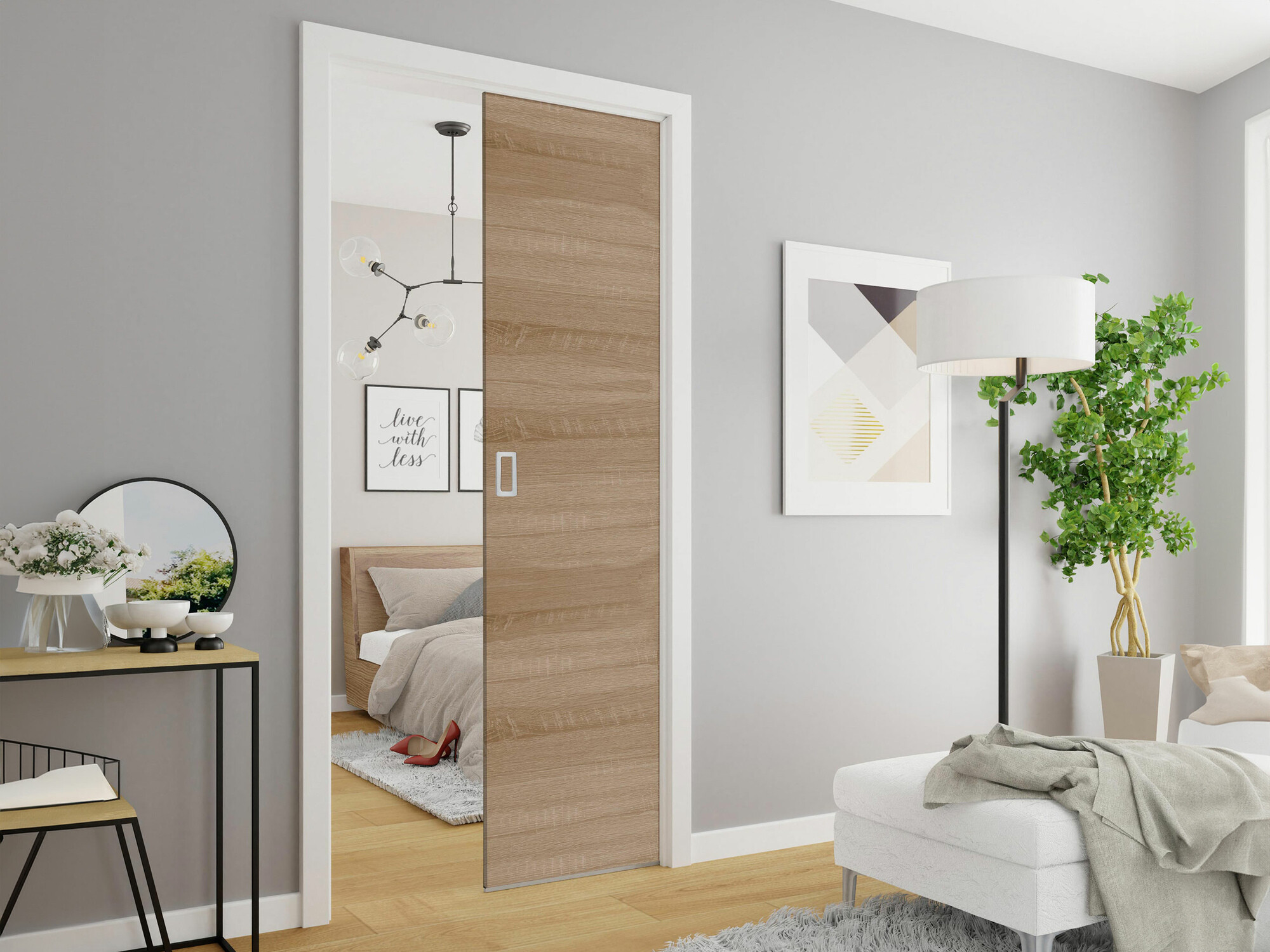 Klizna vrata sa ovom funkcijom mogu se ugraditi i kao desna i leva verzija. Svako ima različite navike, pa pre nego što ugradite vrata, odvojite trenutak da razmislite koja strana bi vam najviše odgovarala.
