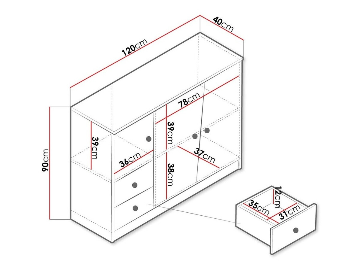 Komoda Almira 106 (Zanatski hrast + Belo + Sivo)
