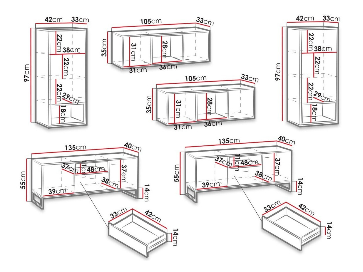 970 x 420 x 330; 350 x 1050 x 330 mm