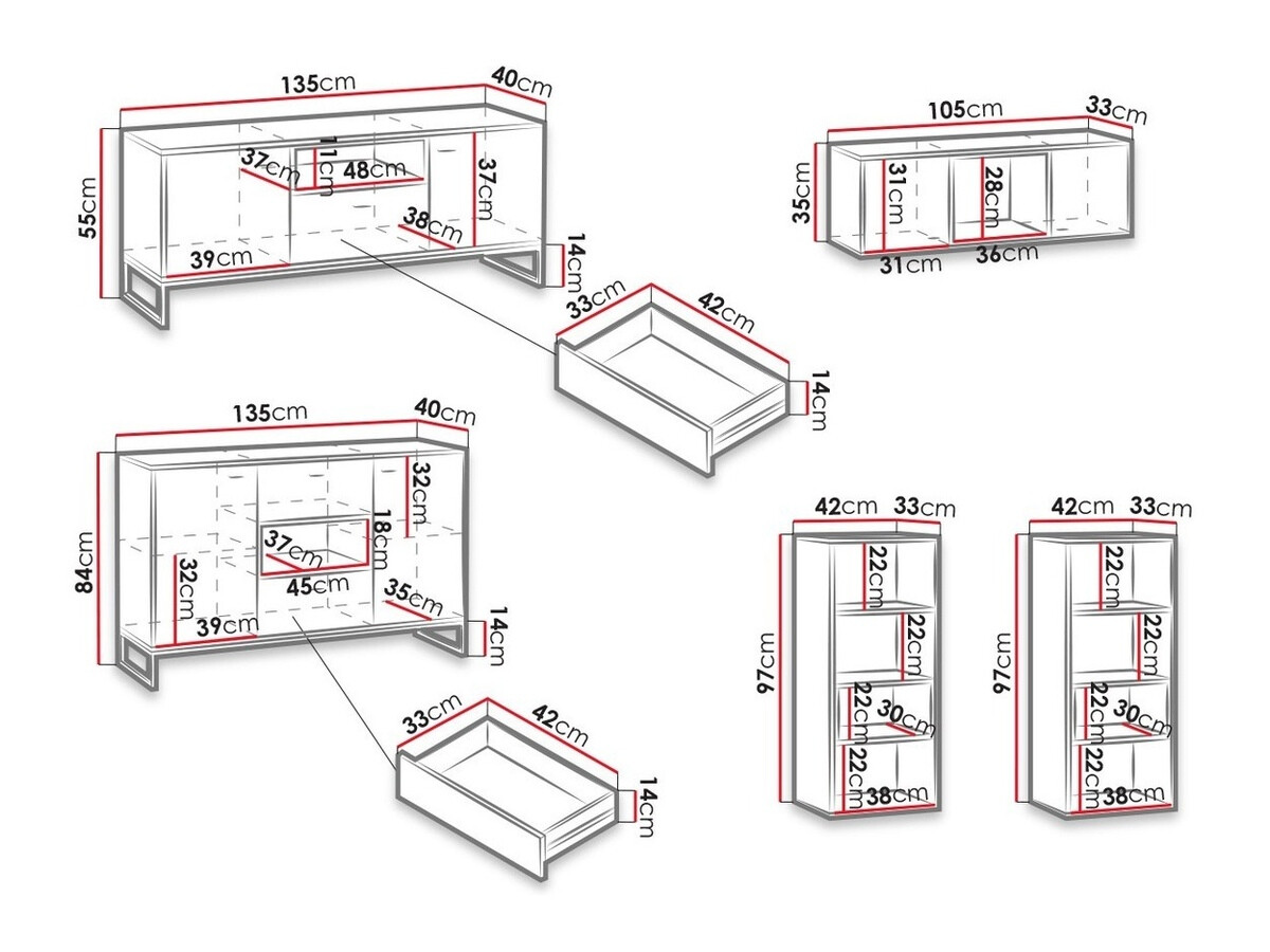 Set za dnevnu sobu Baltesi 114 (Zanatski hrast + Crno)