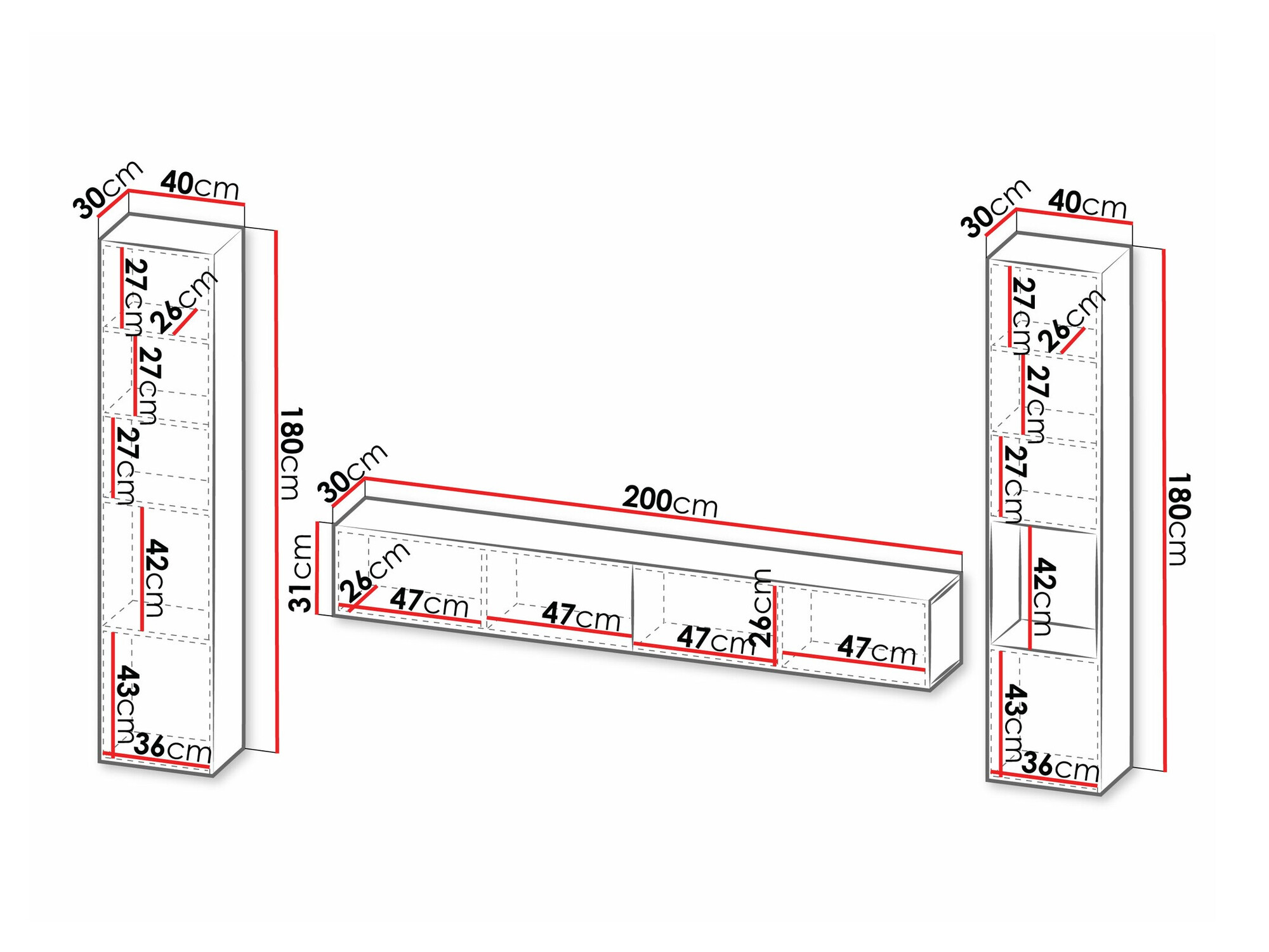 1800 x 400 x 300 mm