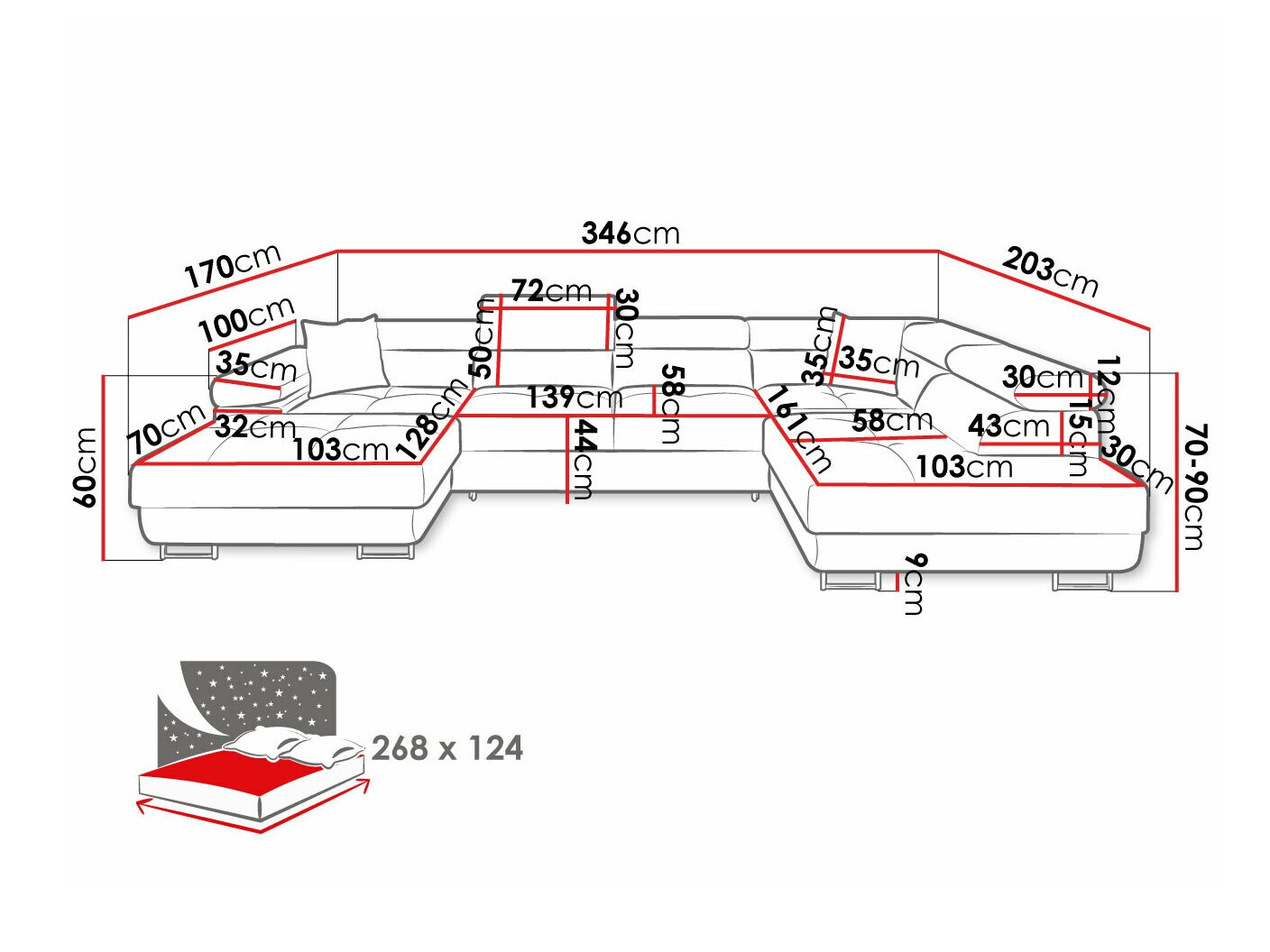 Tkanina zadnjeg dela nameštaja se ne razlikuje od tkanine glavnog dela nameštaja. Ovakav nameštaj možete postaviti u sredinu sobe.