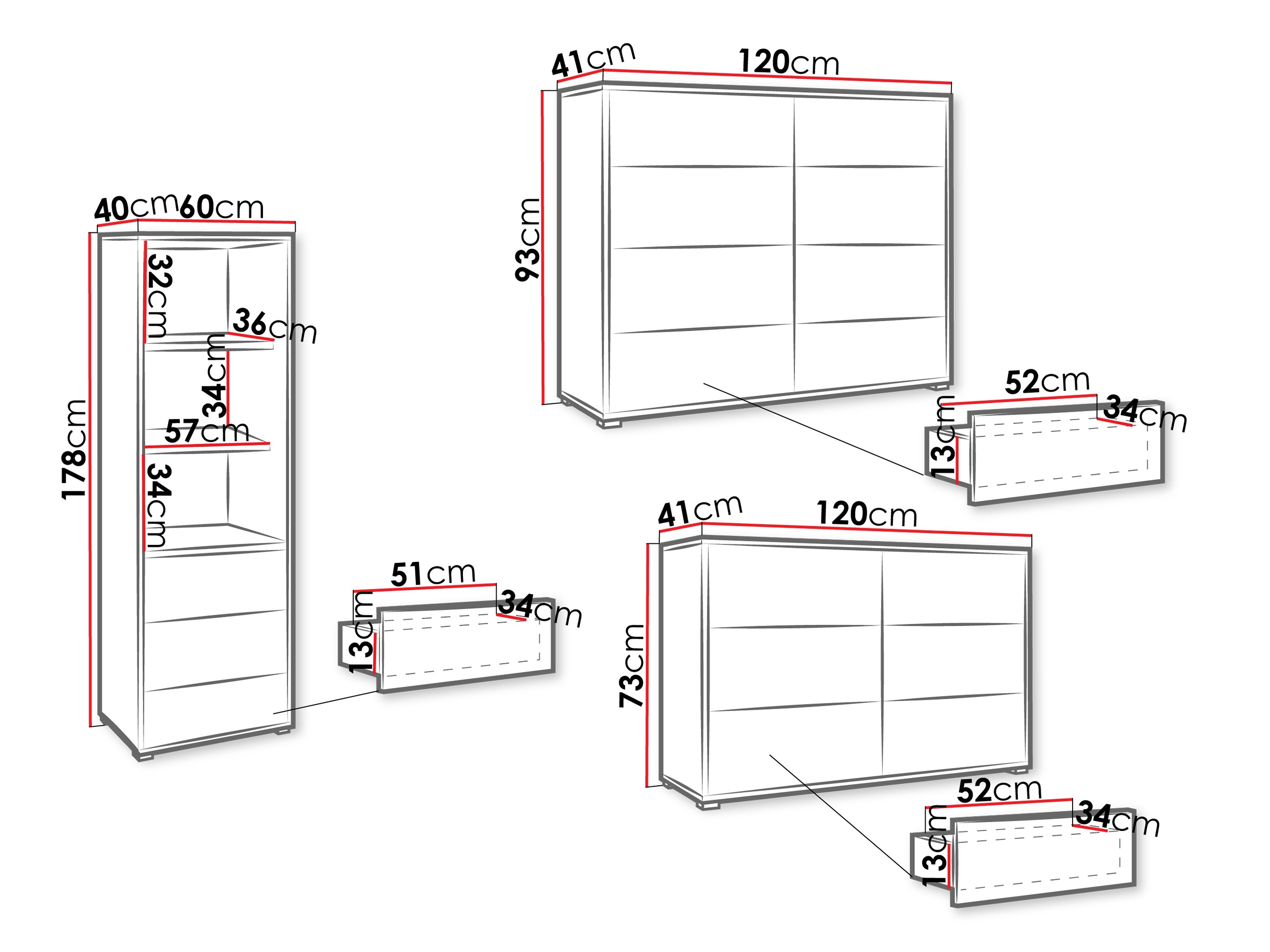 730 x 1200 x 410; 930 x 1200 x 410 mm