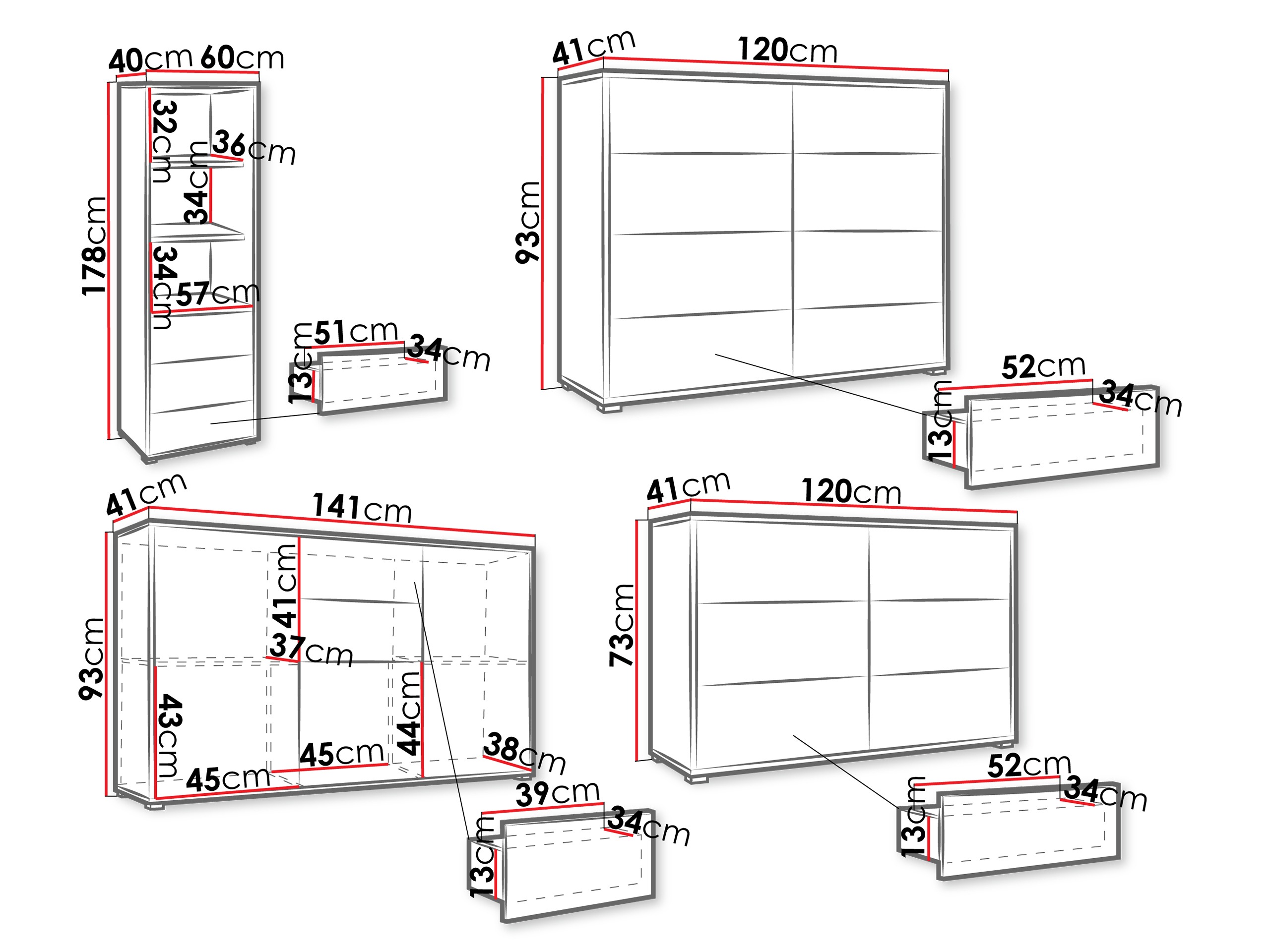 930 x 1410 x 410; 730 x 1200 x 410; 930 x 1200 x 410 mm