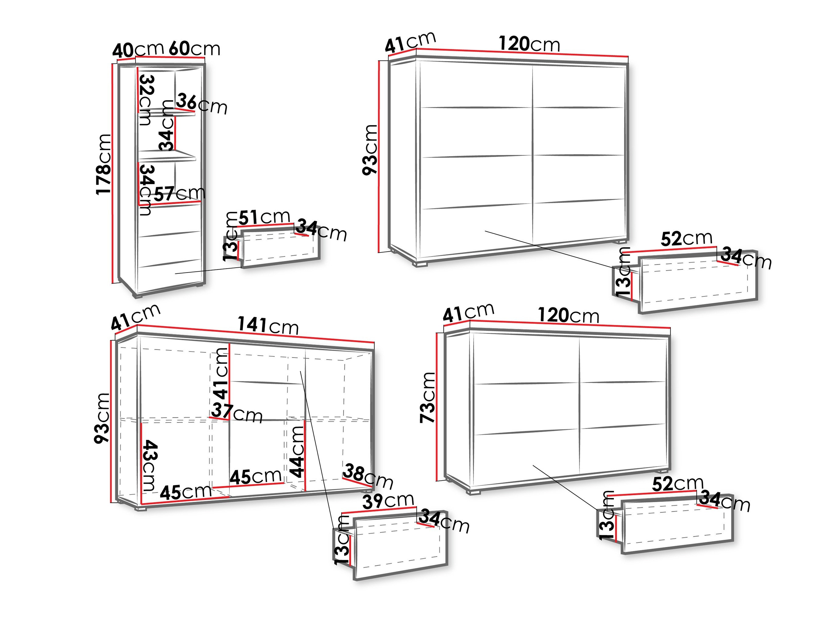930 x 1410 x 410; 730 x 1200 x 410; 930 x 1200 x 410 mm