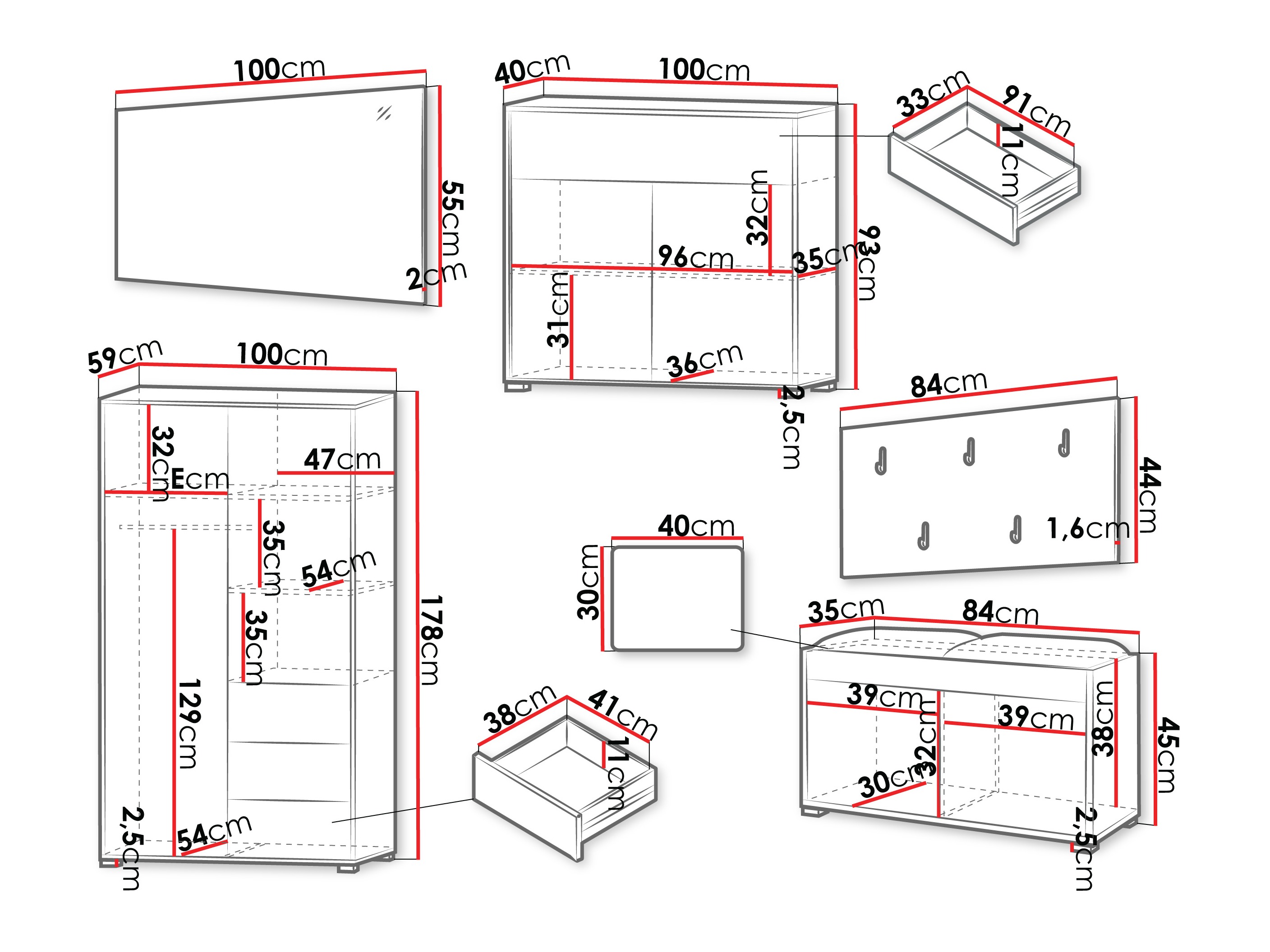 Dimenzije ormarića za cipele: