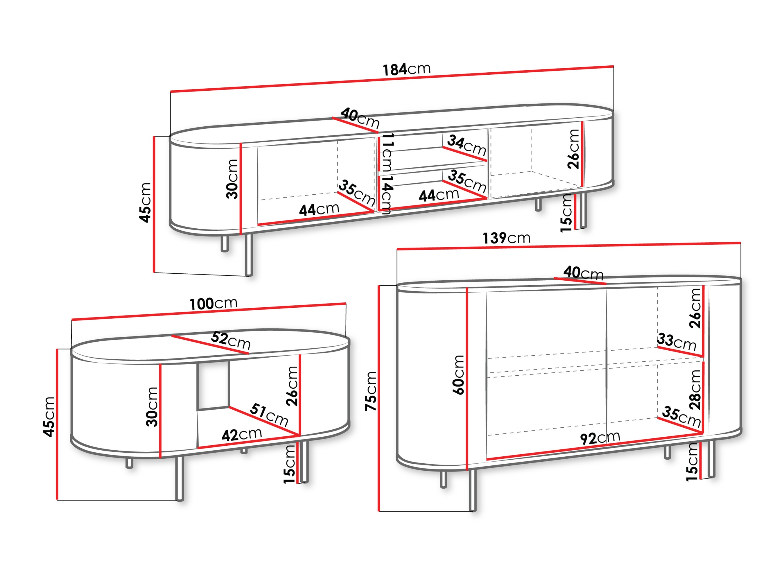 Dimenzije TV komode: