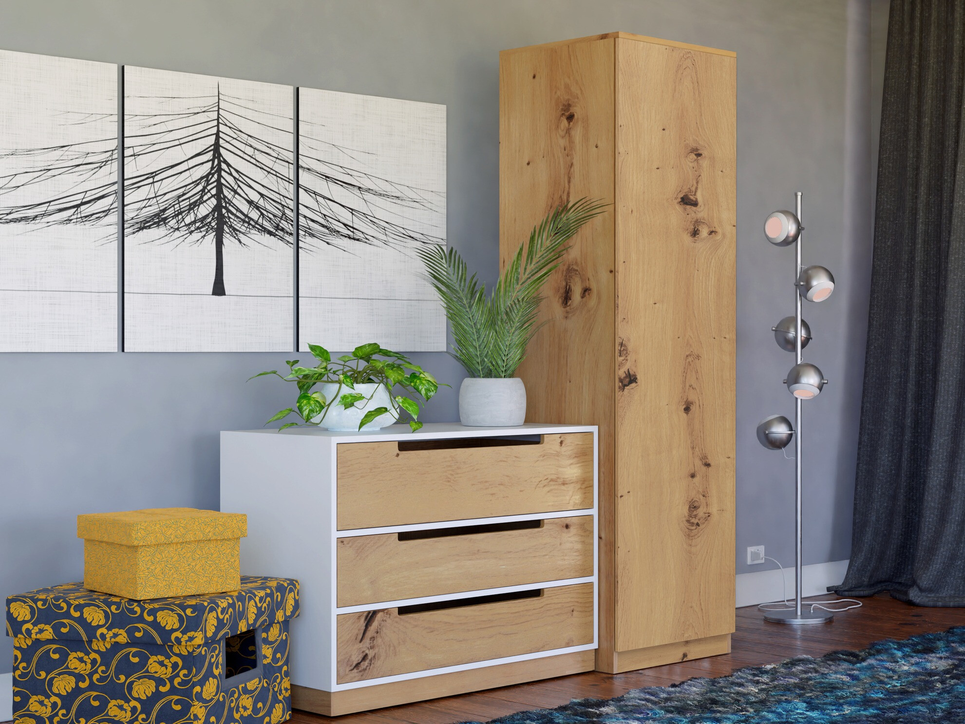 Одабрао сам ову гардеробу да се слаже и уклопи са другим намештајем у спаваћој соби и зато што има четири полице.
