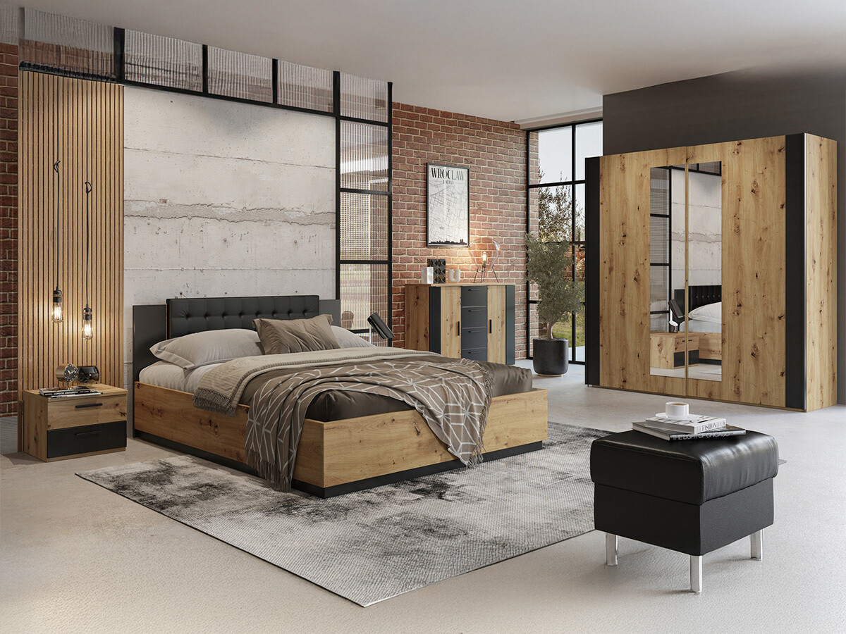 Krevet Felelie 112 (Zanatski hrast + Mat crna)
