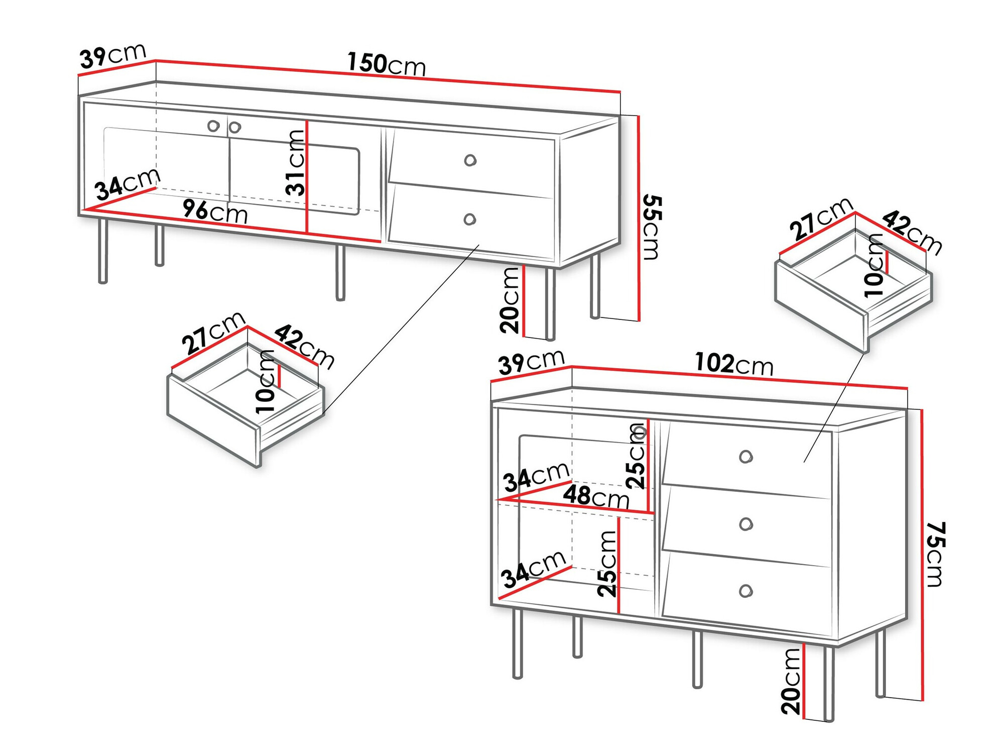 55 x 150 x 39 cm