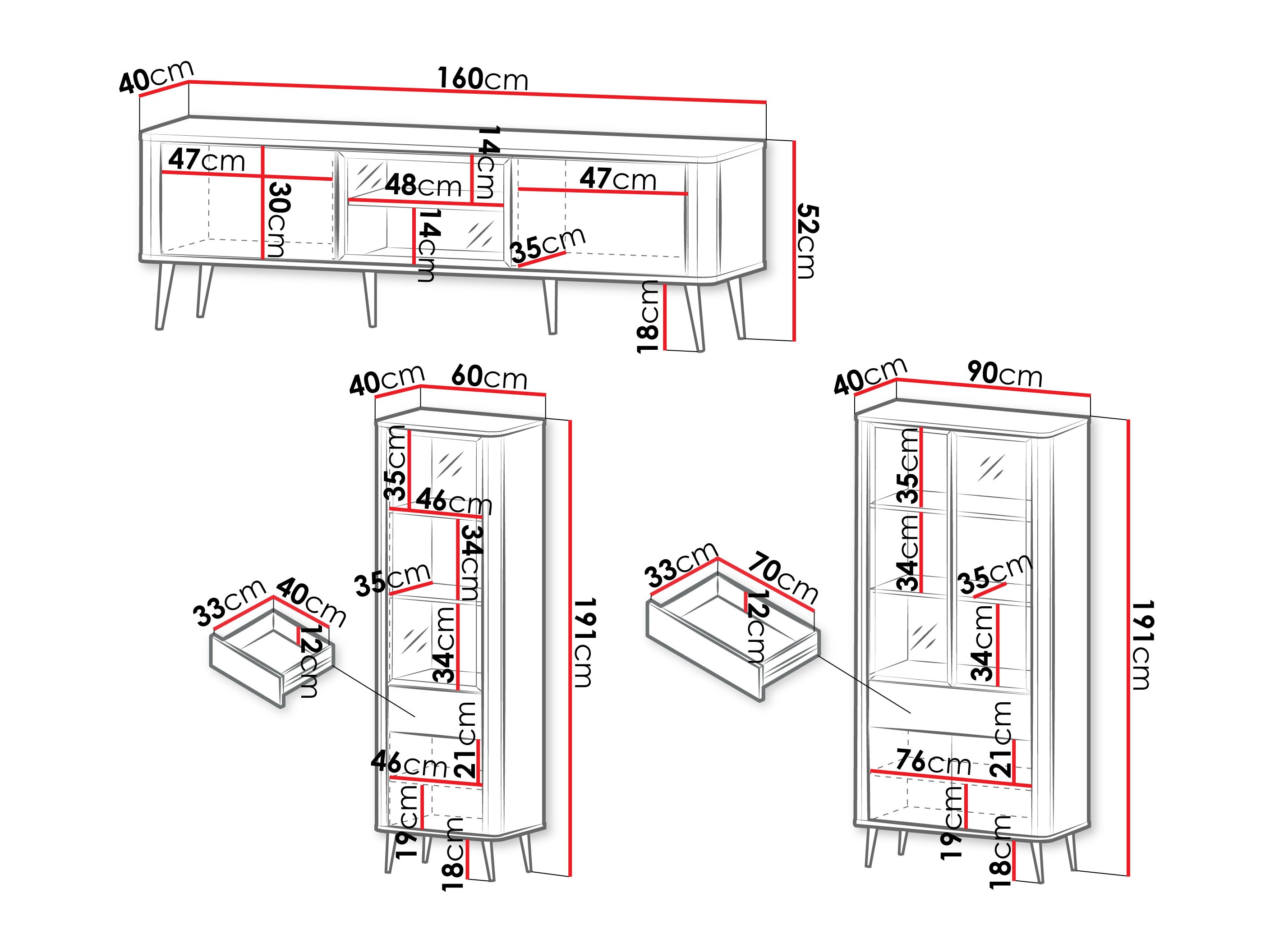 1910 x 900 x 400; 1910 x 600 x 400 mm