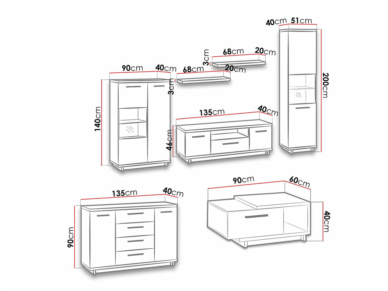 200 x 51 x 40 cm