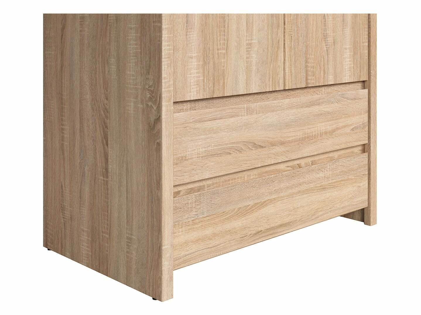 Ормар изгледа и функционише задовољавајуће. Предње плоче су мало танке и изгледају као бочне. Очекивао сам компактније панеле. Иначе, производ је у реду. Монтажа захтева одређену пажњу и труд, посебно подешавање врата.