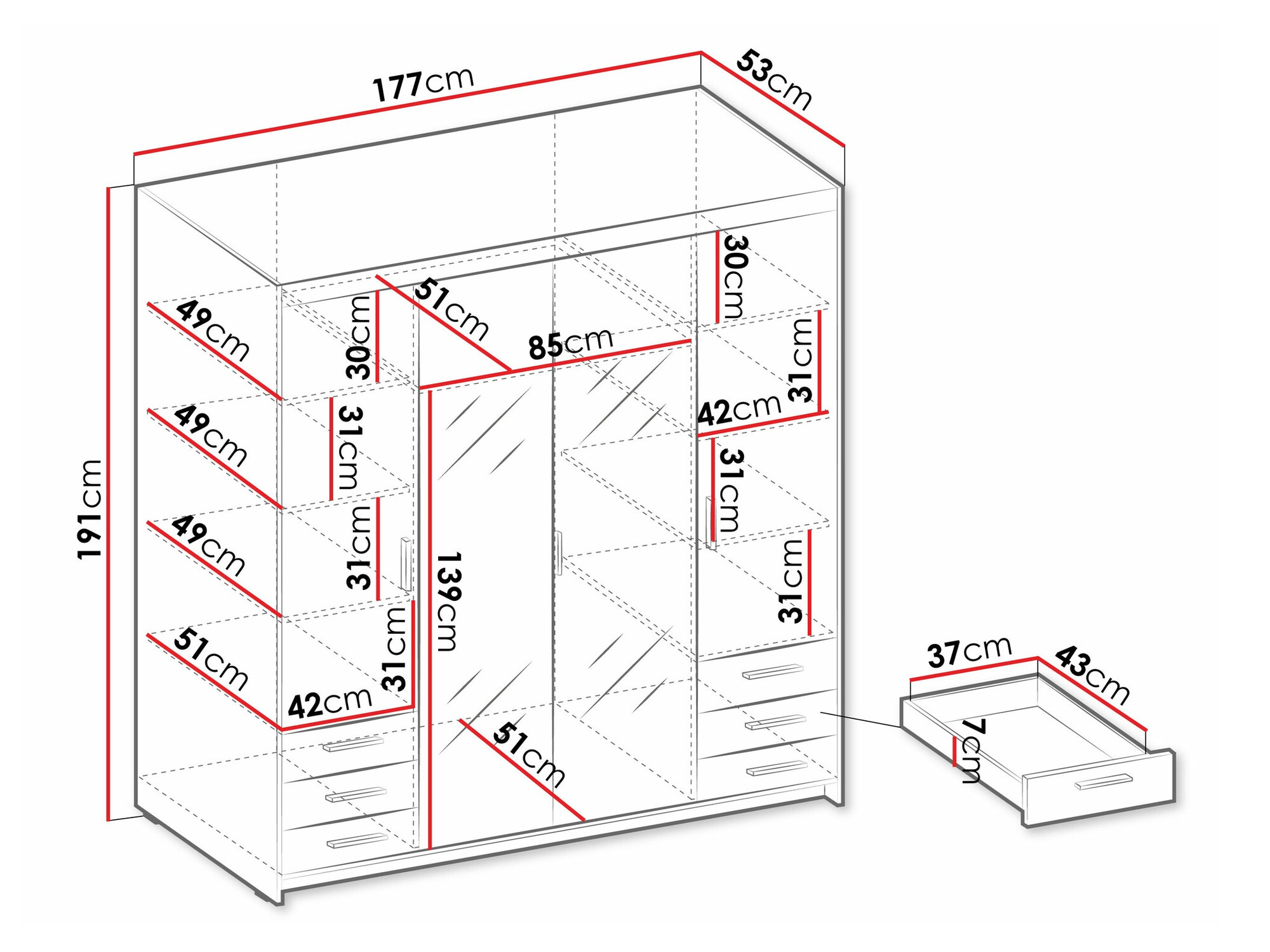 191 cm  177 cm  53 cm