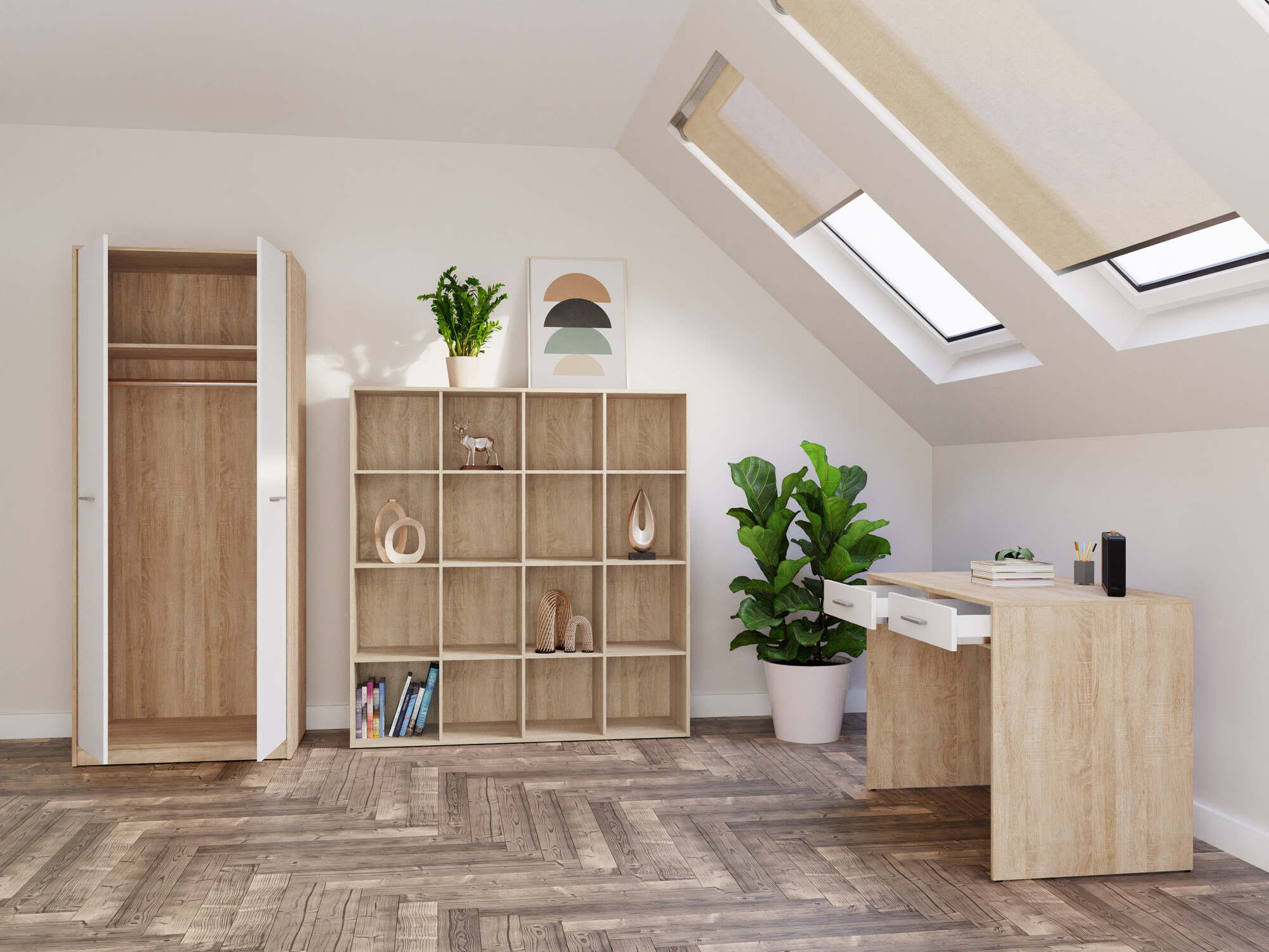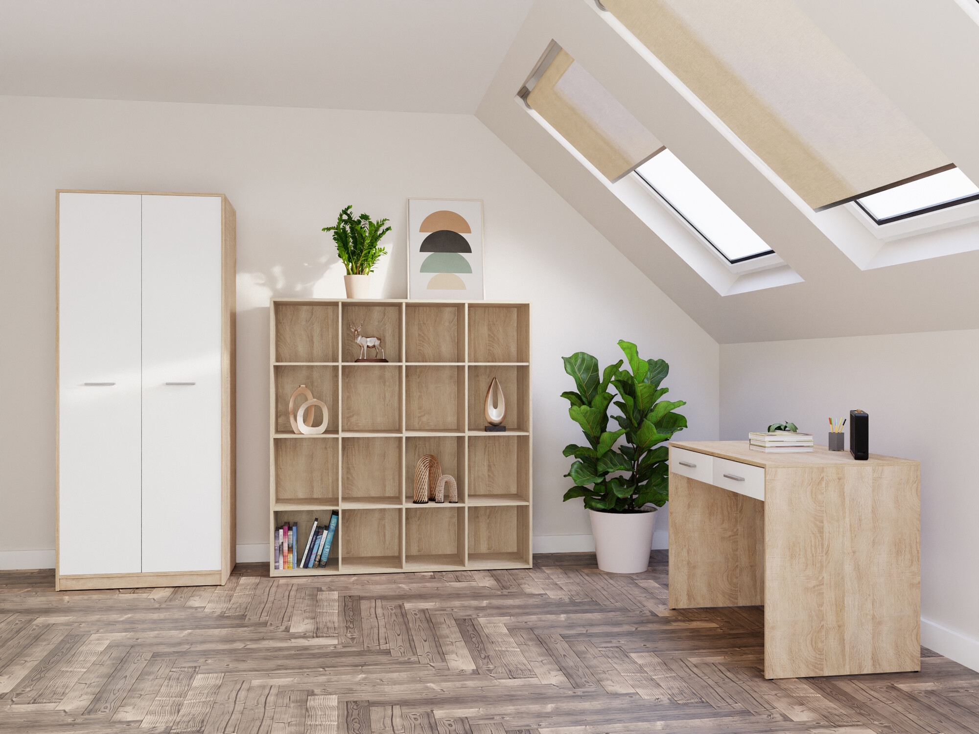 Set za kućnu kancelariju Novsore 166 (Sonoma hrast + Belo)