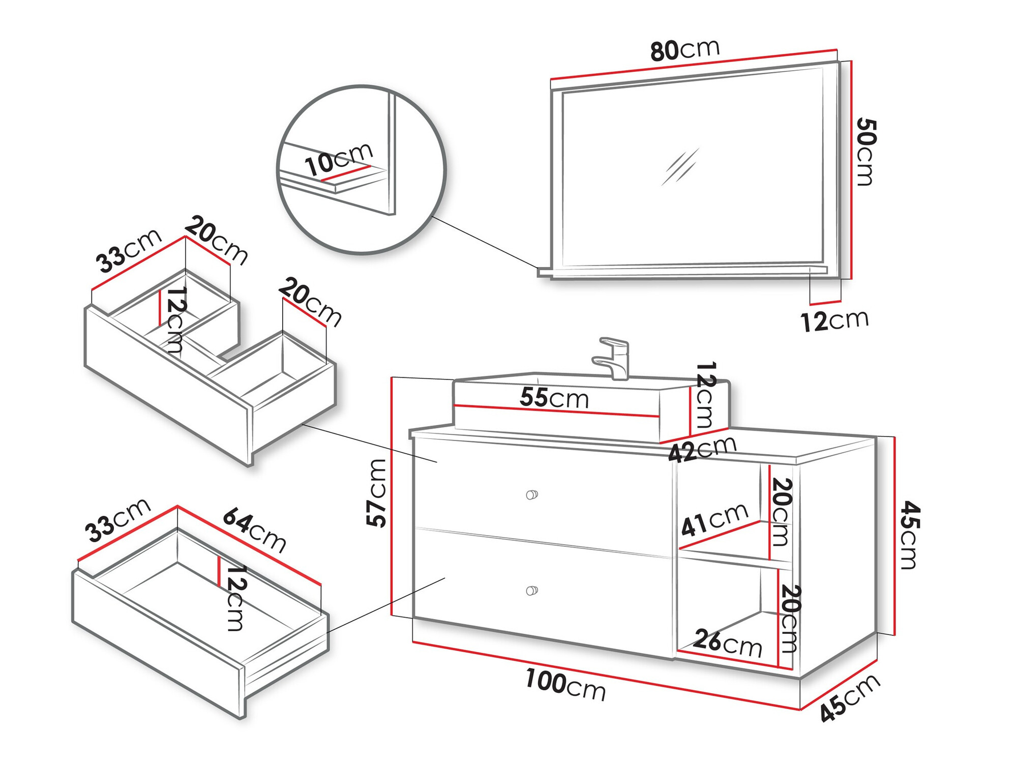 Dimenzije ormarića za umivaonik: