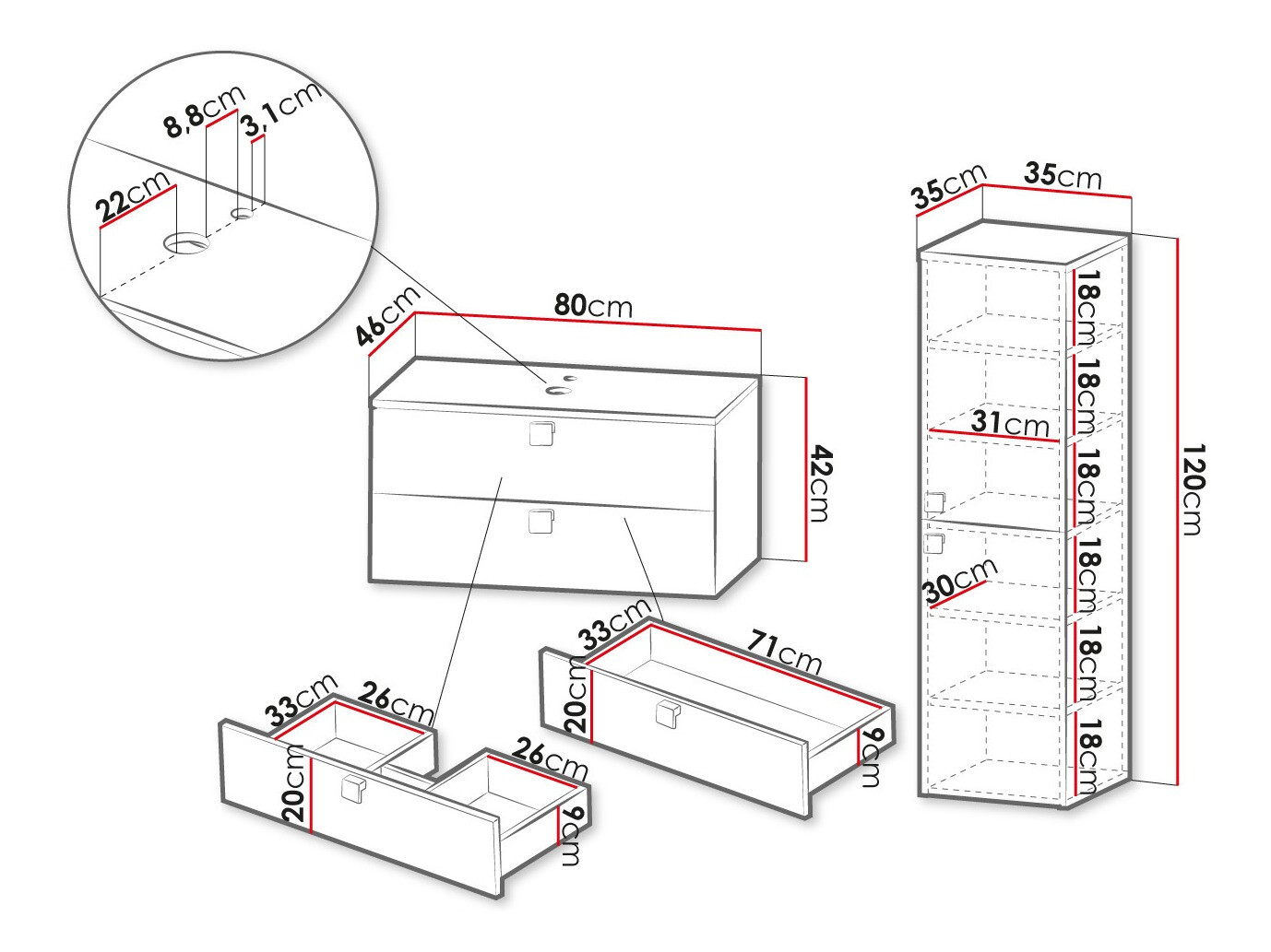 Dimenzije ormarića za umivaonik: