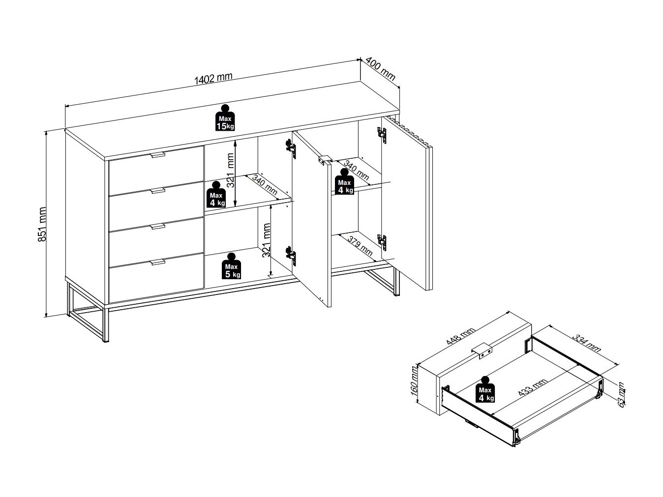 85.1 x 140.2 x 40 cm