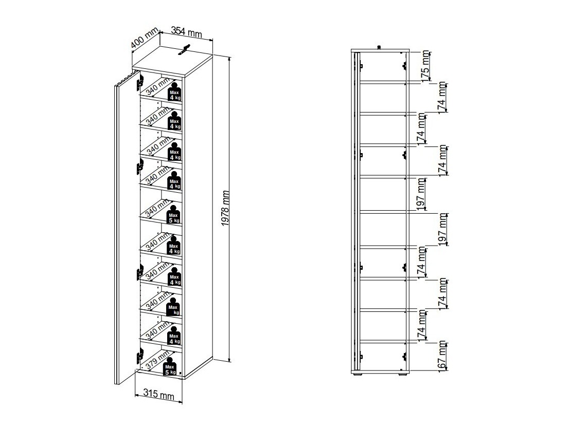 197.8 x 35.4 x 40 cm