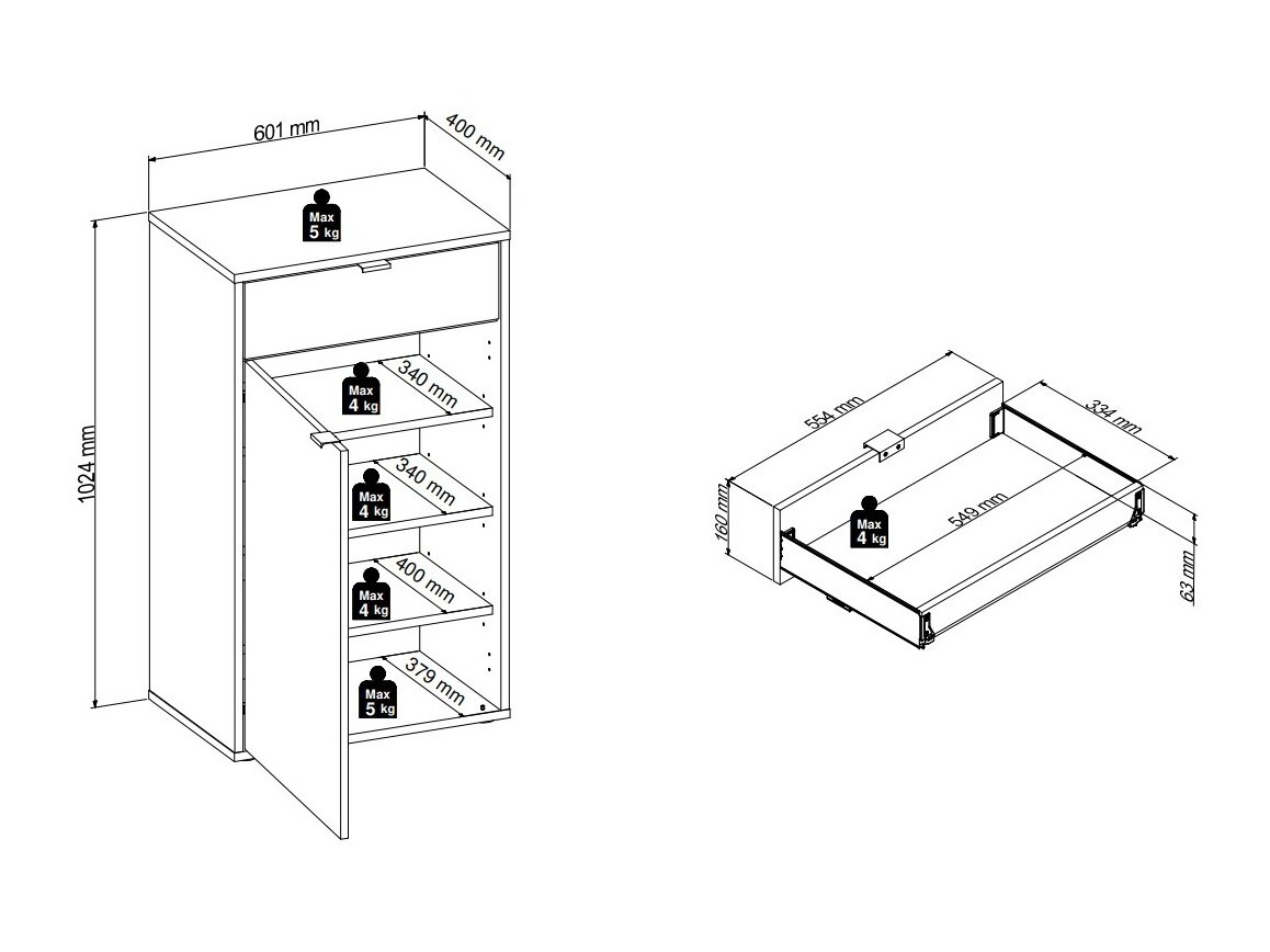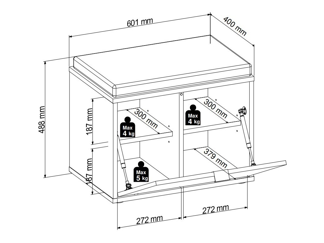 48.8 x 60.1 x 40; 102.4 x 60.1 x 40 cm