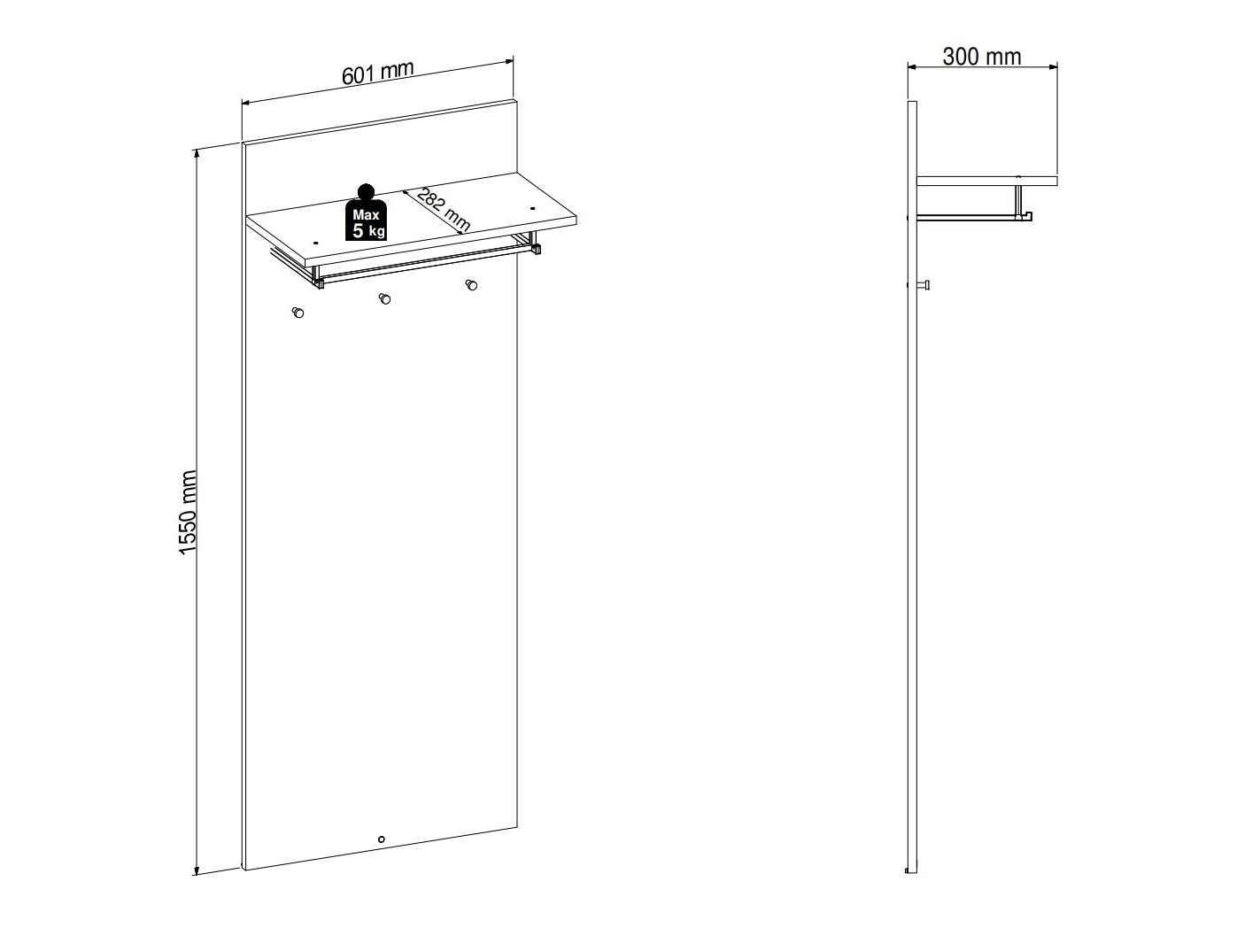 155 x 60.1 x 30 cm