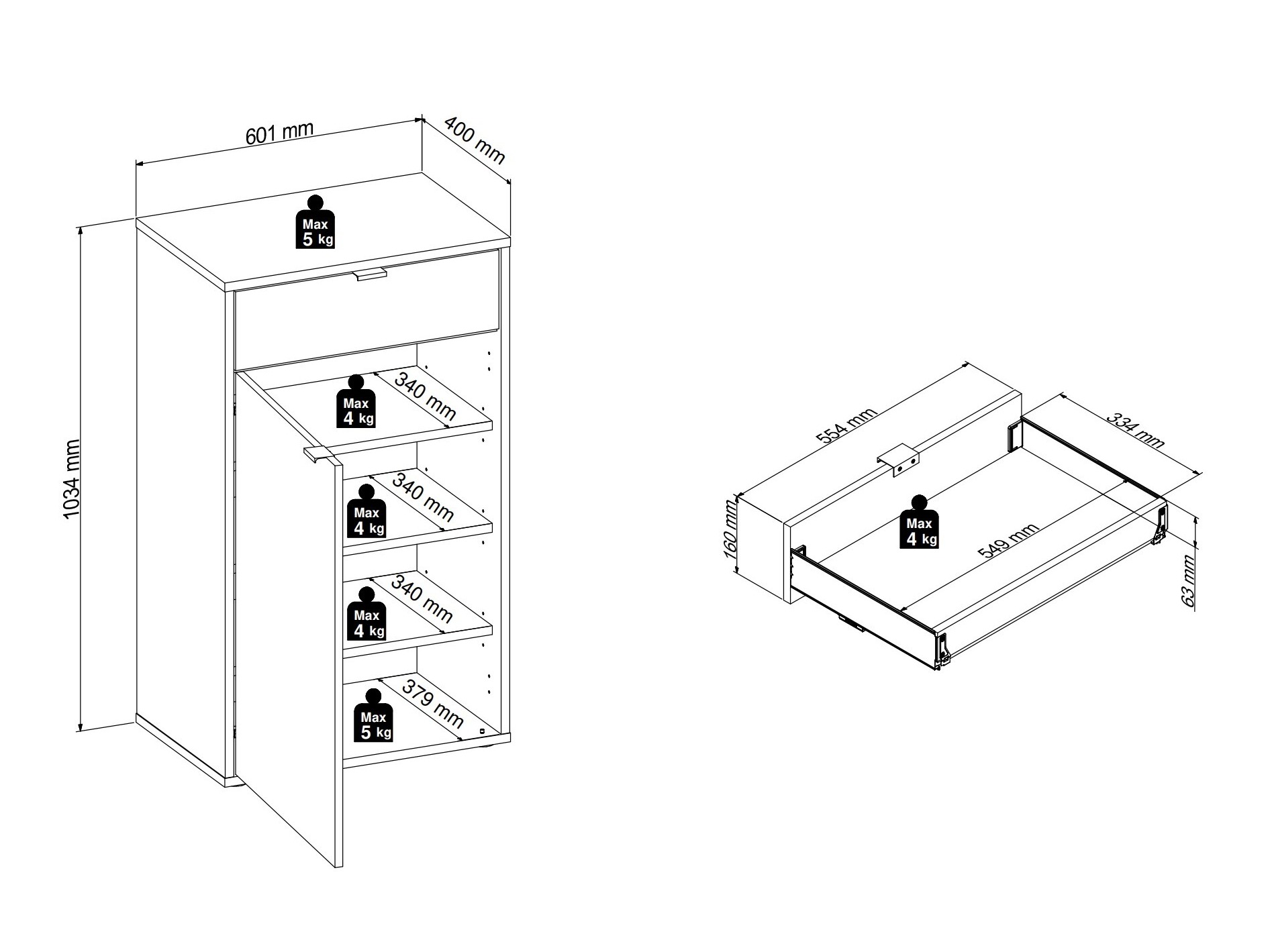 48.8 x 83.5 x 40; 103.4 x 60.1 x 40 cm