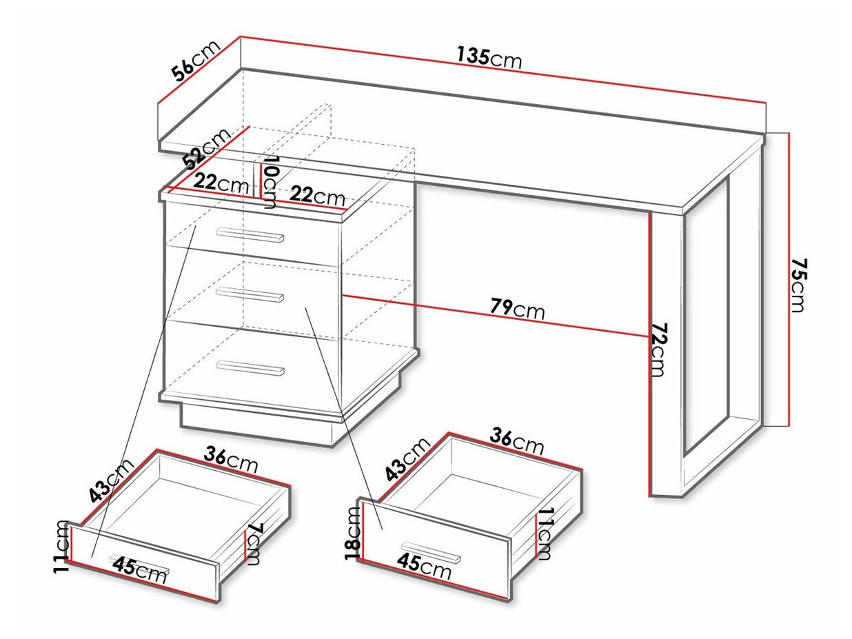 препоручујем. Веома добар однос цене и квалитета! Радни сто је издржљив, чврст, са главном плочом дебљом од осталих елемената, што му даје повећану отпорност, чак и ако на њега ставите нешто теже (штампач, фајлове итд.). Добро је осмишљен јер има плочу постављену вертикално да спречи савијање врха. Има могућност монтирања фиока на леву или десну страну. Лако се монтира. Оков фиока је веома квалитетан, базиран на лежајевима и са пуним отварањем.