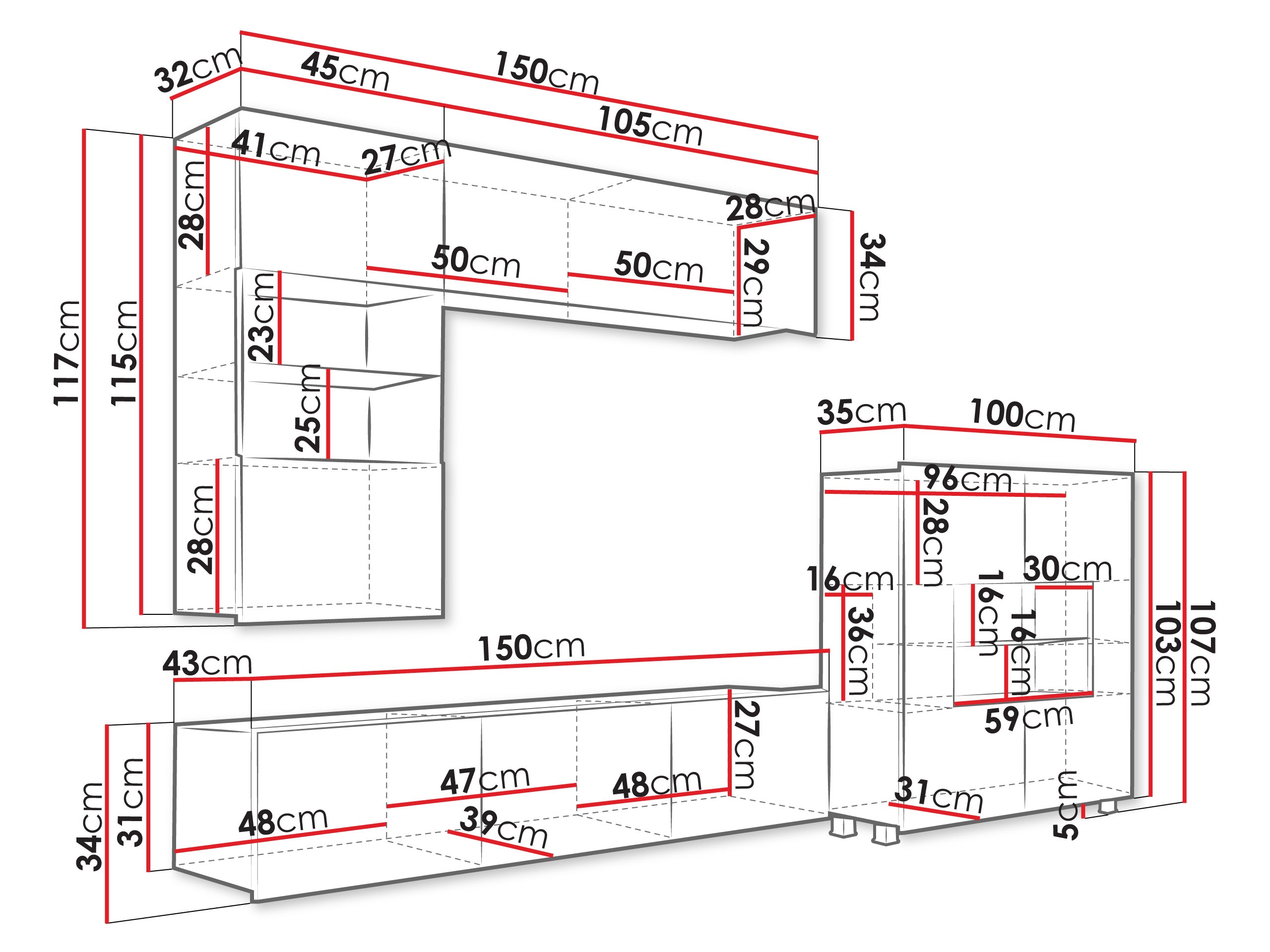 340 x 1050 x 320; 1170 x 450 x 350 mm