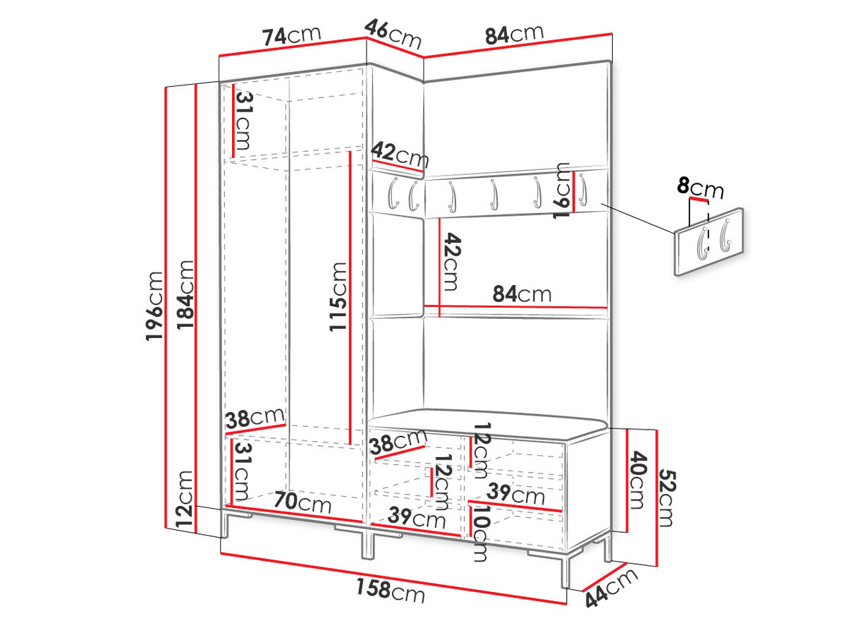 Dimenzije ormarića za cipele: