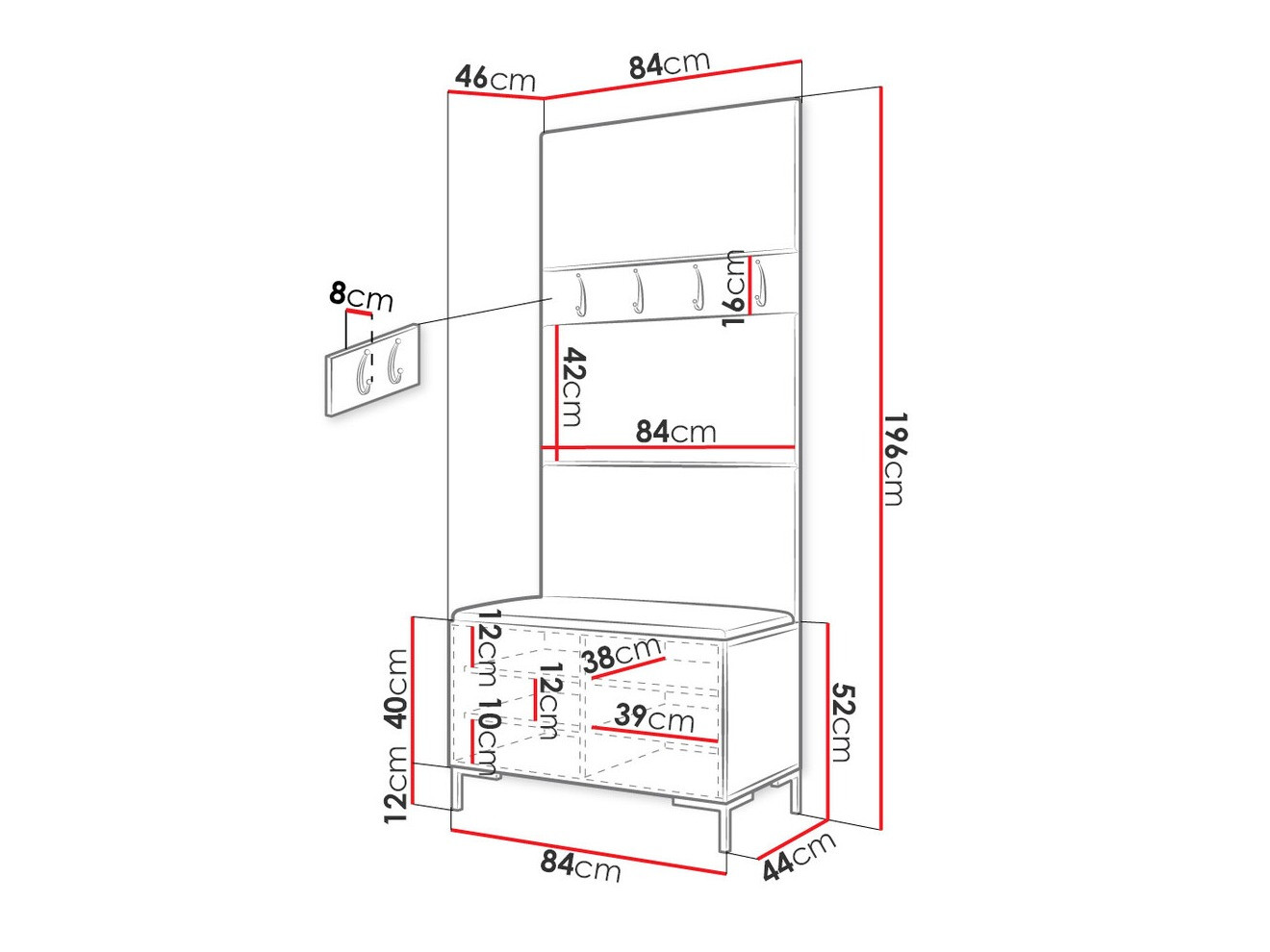 Dimenzije ormarića za cipele: