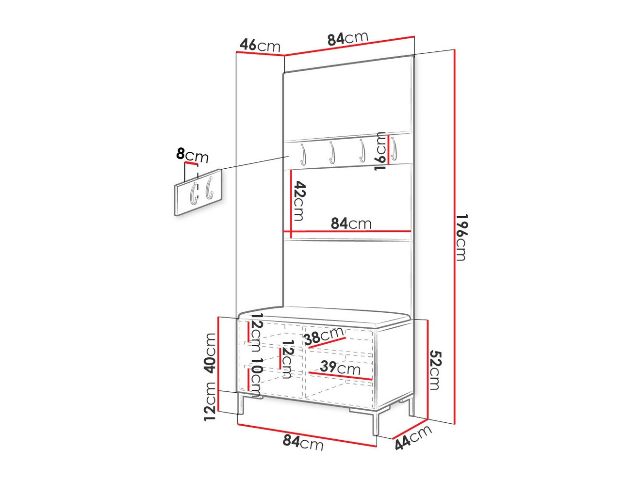 Dimenzije ormarića za cipele: