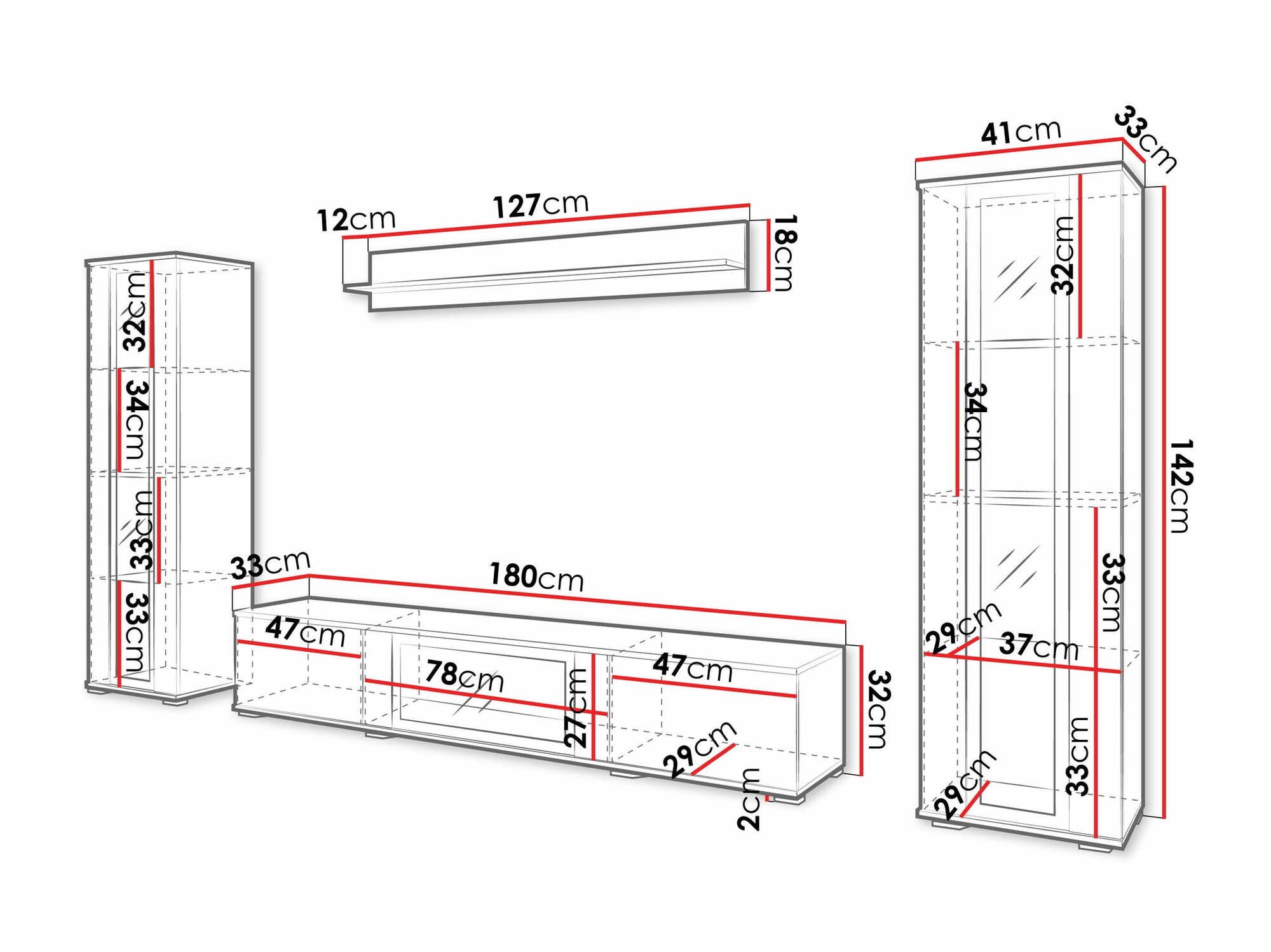 Dimenzije viseće police: