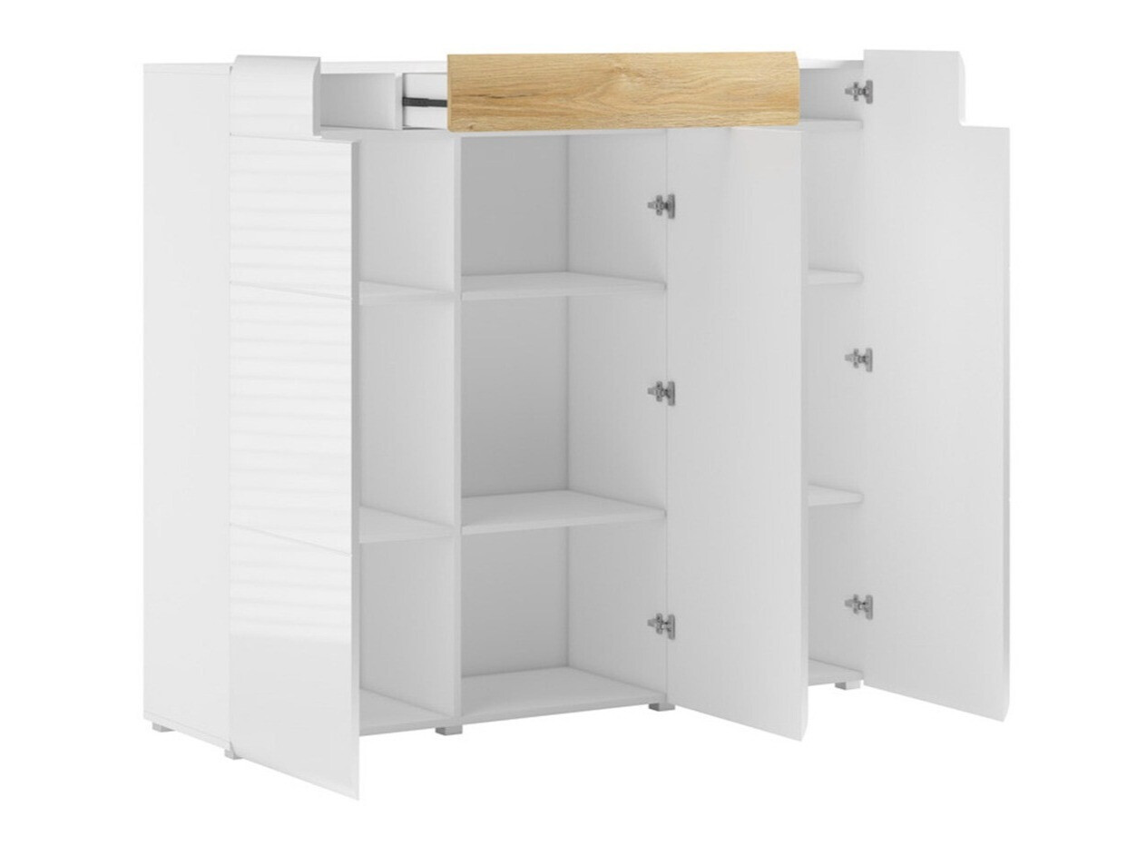 Одлична комода, велике и практичне запремине. Плус, лепи фронтови и шарке, водилице са квалитетним затварањем. Лоше, прилично траљаво изведено спајање задњих делова са остатком комоде. Није пресудно, али мало упада у очи. Не утиче на функционалност.
