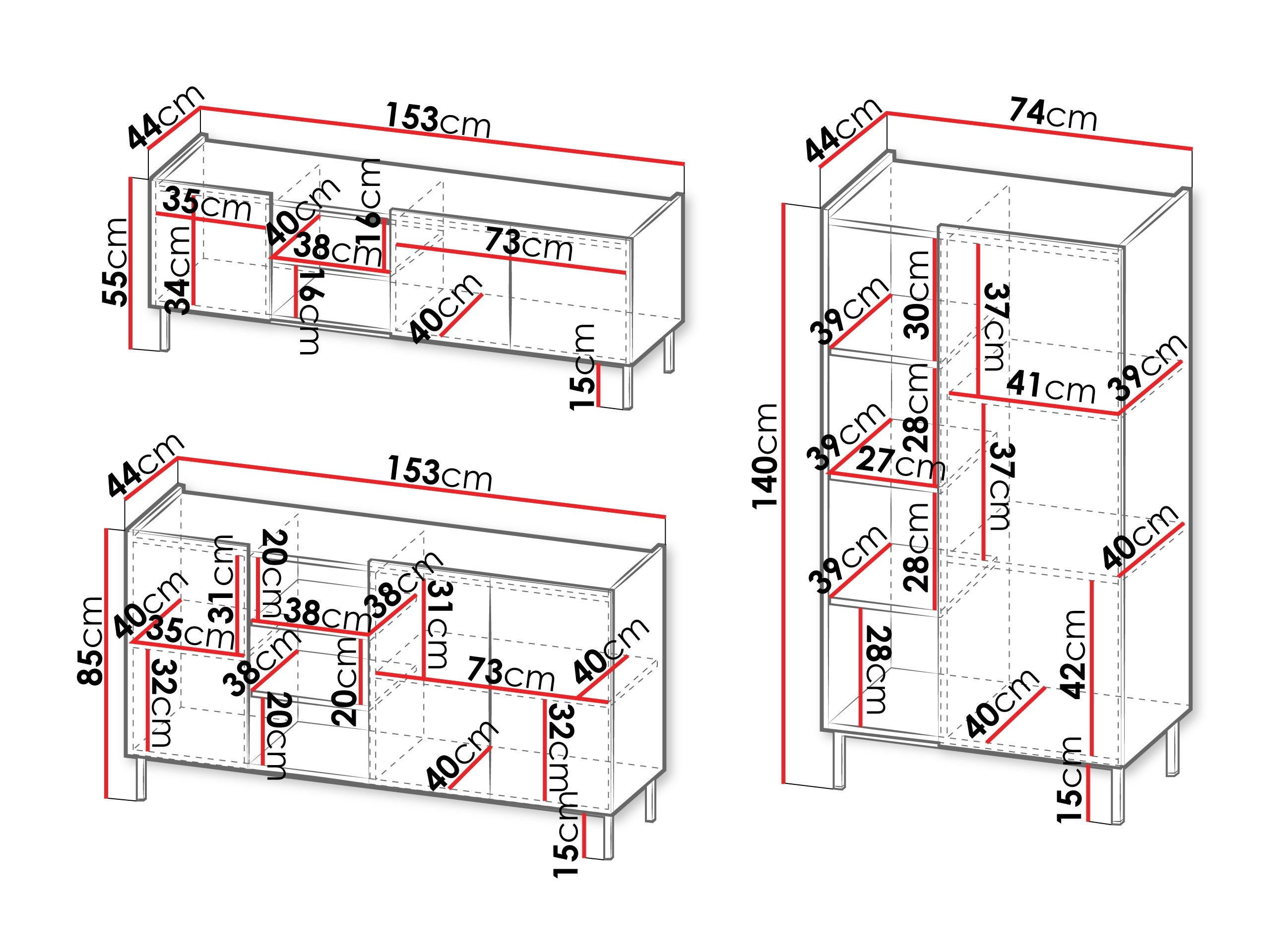 55 x 153 x 44 cm