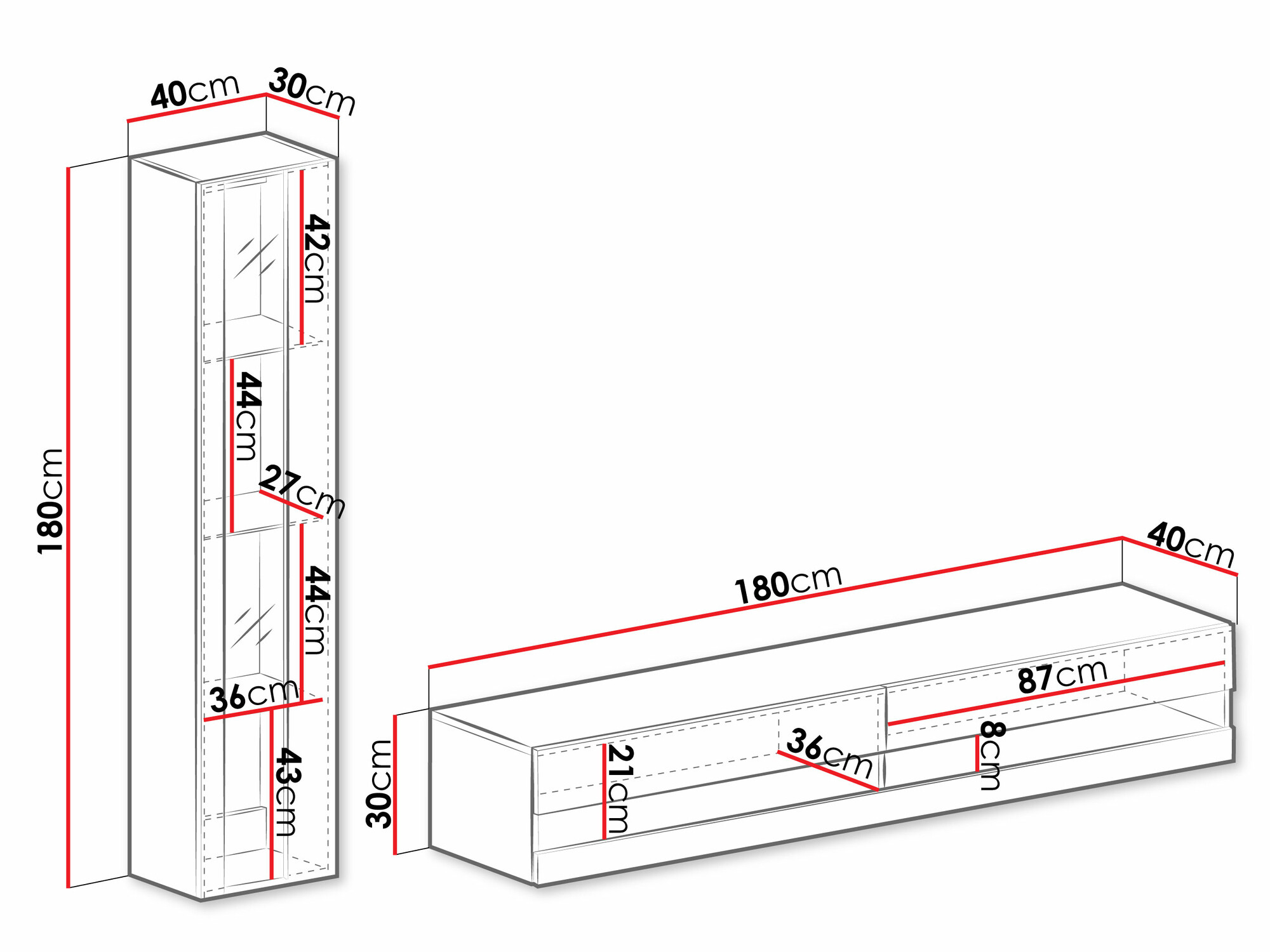 Dimenzije viseće police:
