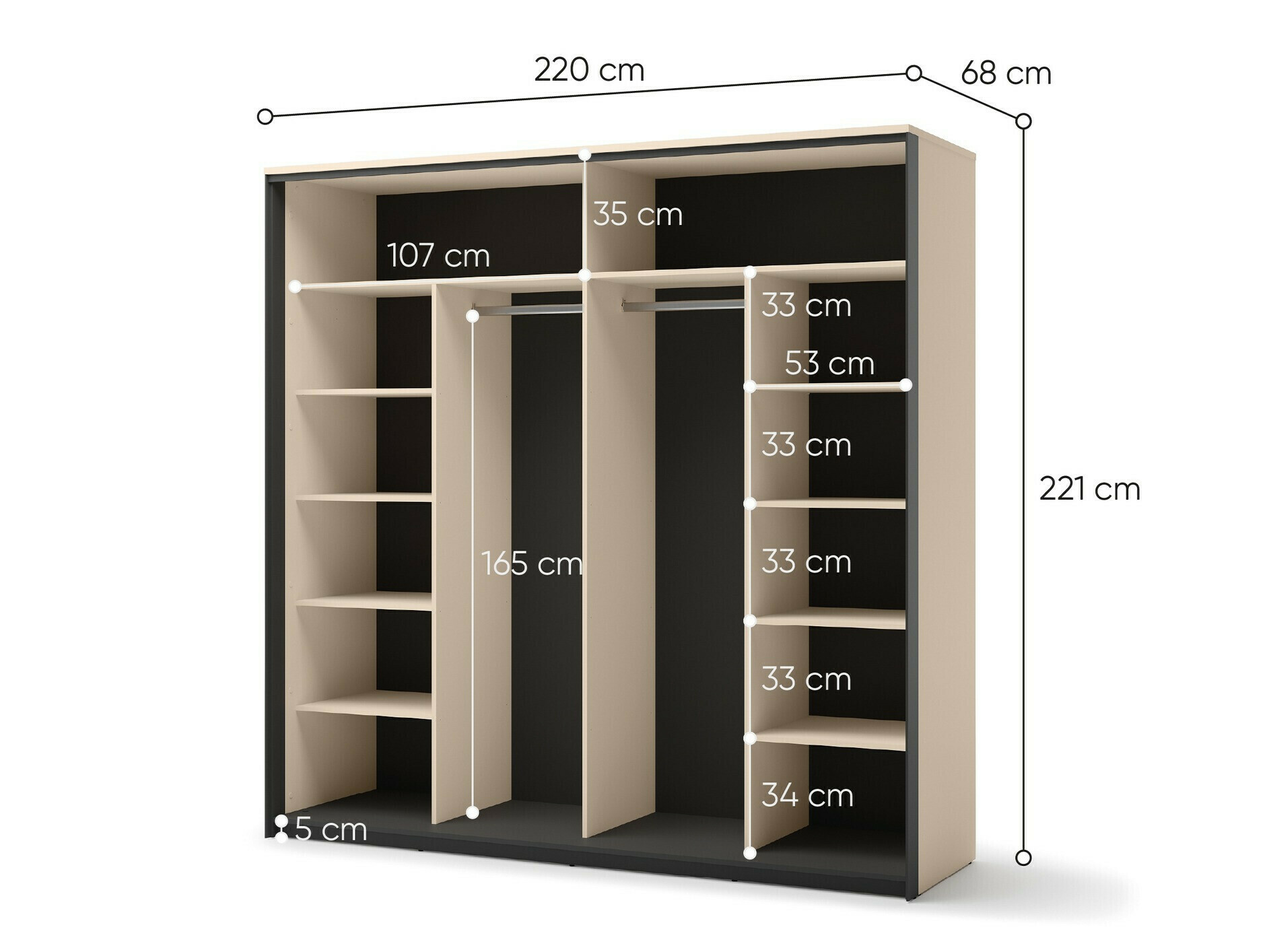 221 x 220 x 68 cm