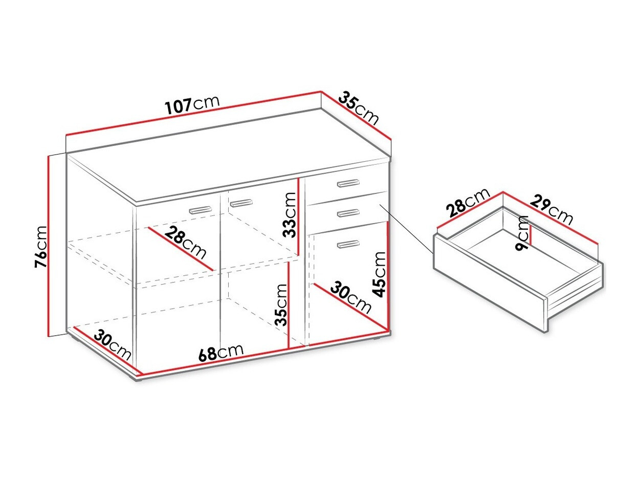 Веома добра комода: компактна, не заузима пуно простора и прилично је пространа. Бела боја освежава унутрашњост. Али - не пристаје чврсто уз зид због постоља на поду. Желео бих да произвођачи обезбеде изрезе на задњој и доњој страни комоде за чврсто приањање уз зид.