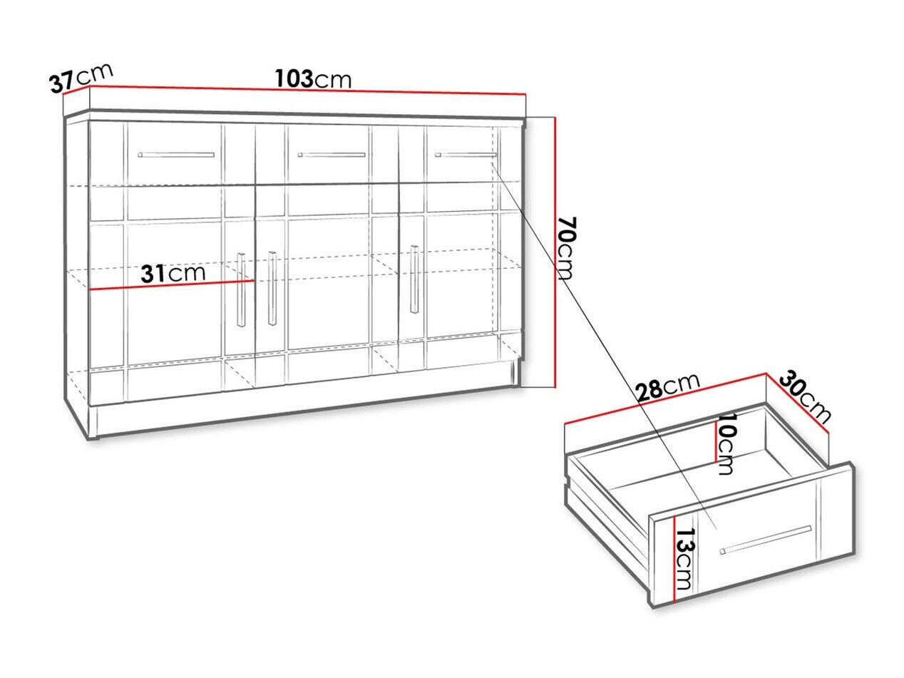 Мало није одговарао мојим захтевима за боју (светла боја храст Сонома, али се мало разликује од кабинета Тусцон 149 Сонома храст). Али нема коментара у вези мерења - све величине су тачно наведене и није било одступања. Такође је добар распоред унутрашњих волумена, који ми је потребан.