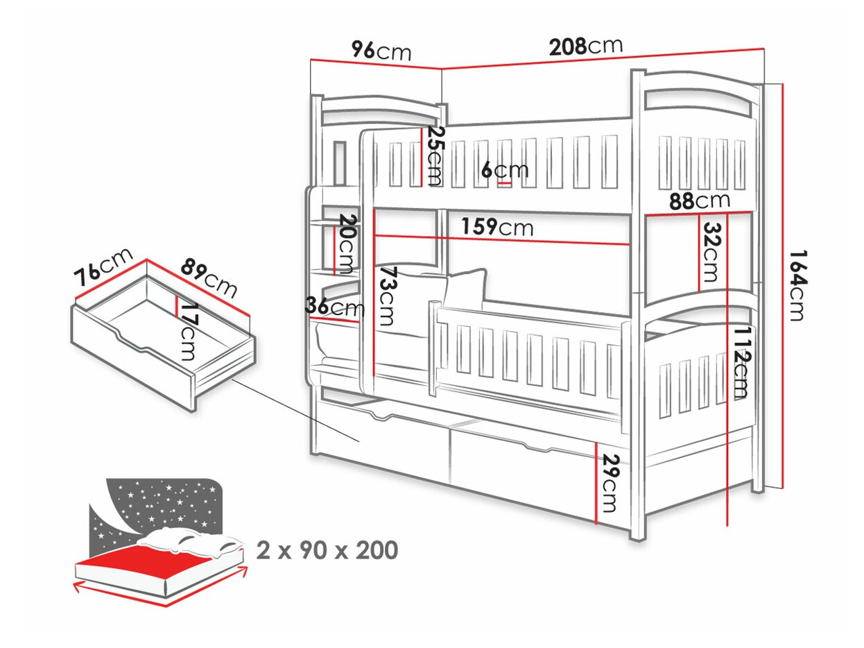 Прекрасан модел кревета, ако разумете нијансе, монтажа такође није тешка. Велике, простране фиоке испод кревета у које можете ставити све што вам је потребно. Удобне, широке степенице, степенице. Стабилна конструкција, али неће одговарати за уобичајено скакање по кревету, јер се испод душека налазе лаке дрвене летвице које држе душек, тежину детета, али не и динамичко оптерећење. Веома удобан и сигуран за спавање.
