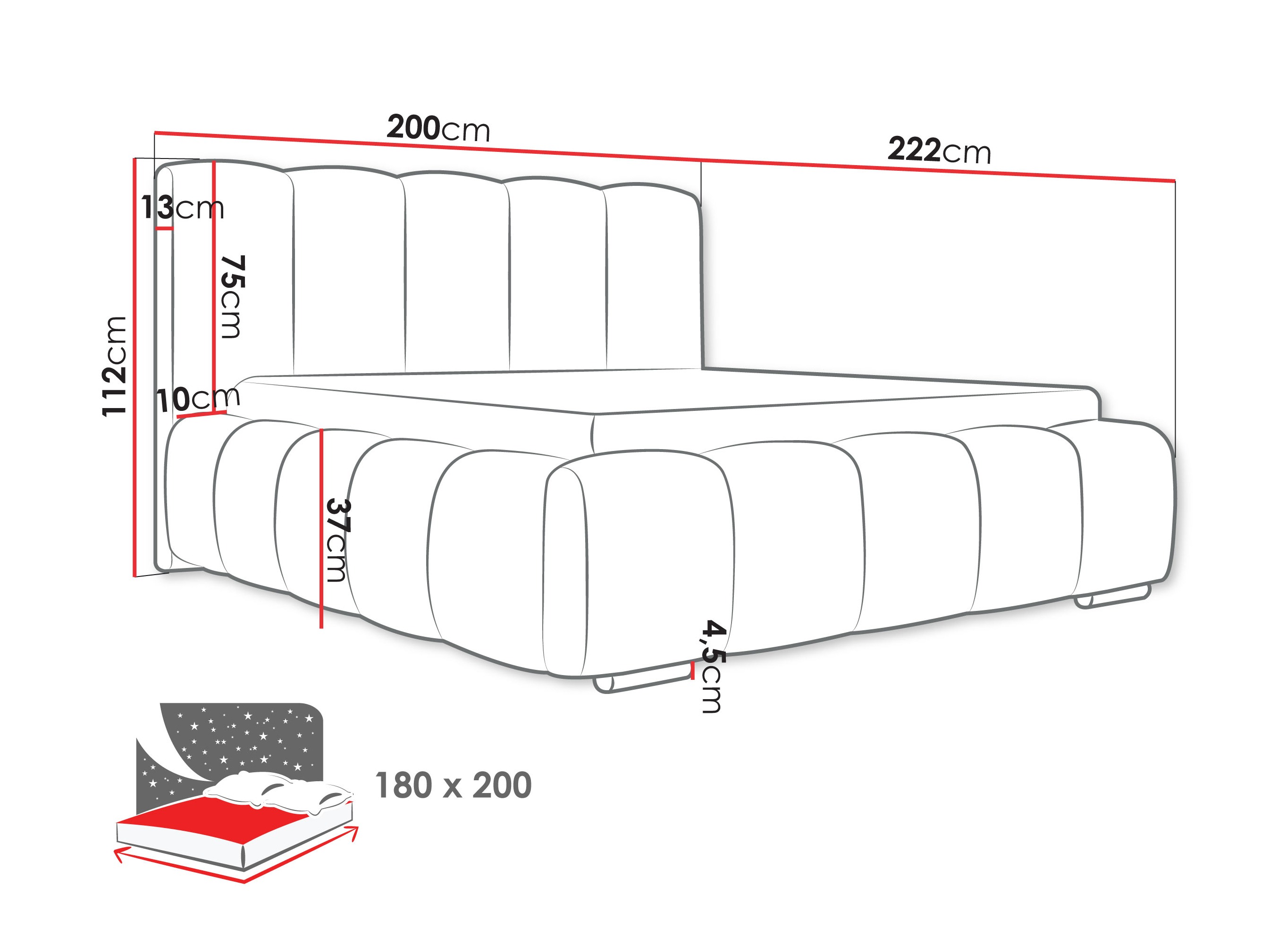 112 cm  180 cm  222 cm