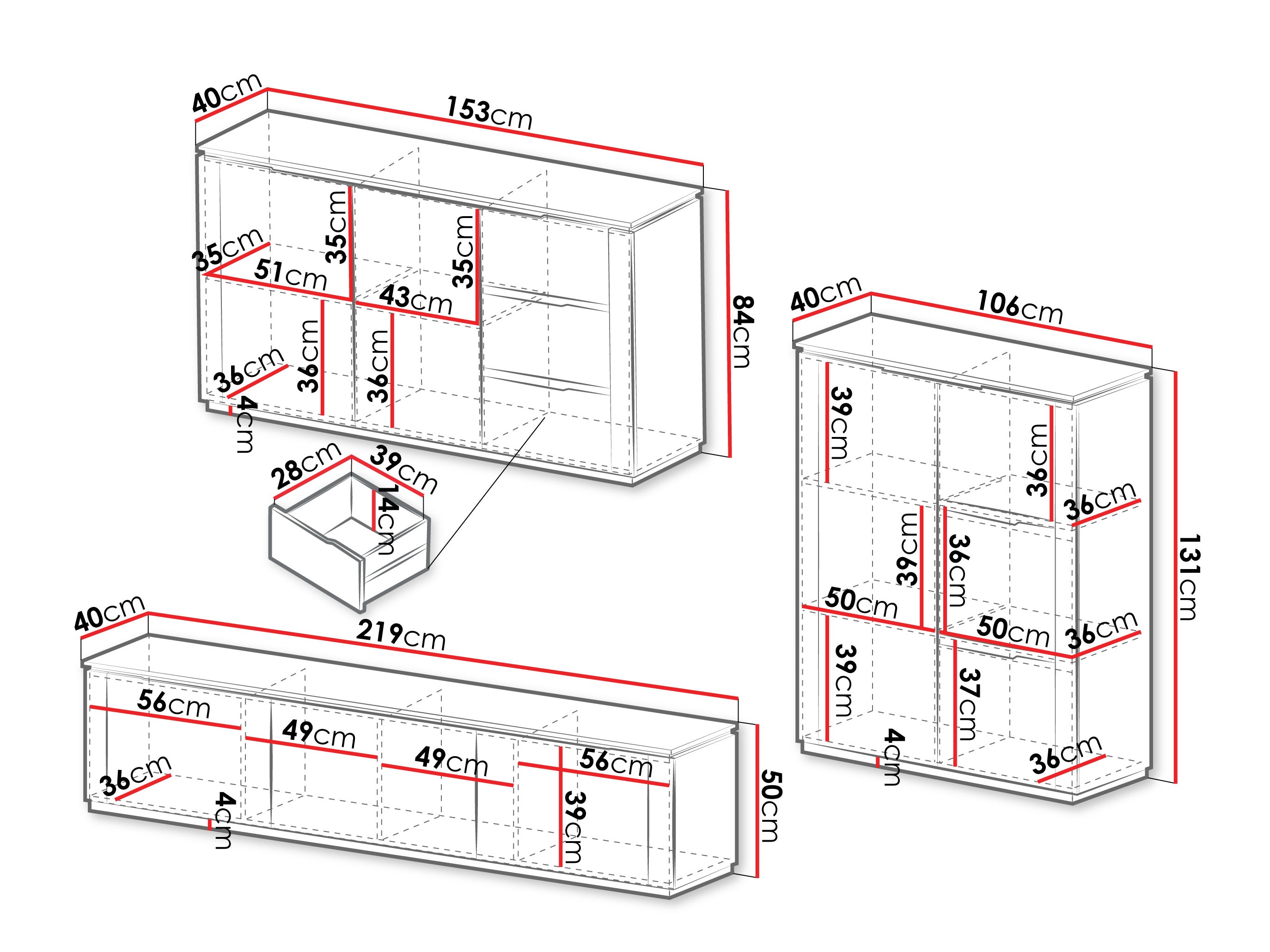1310 x 1060 x 400; 840 x 1530 x 400 mm