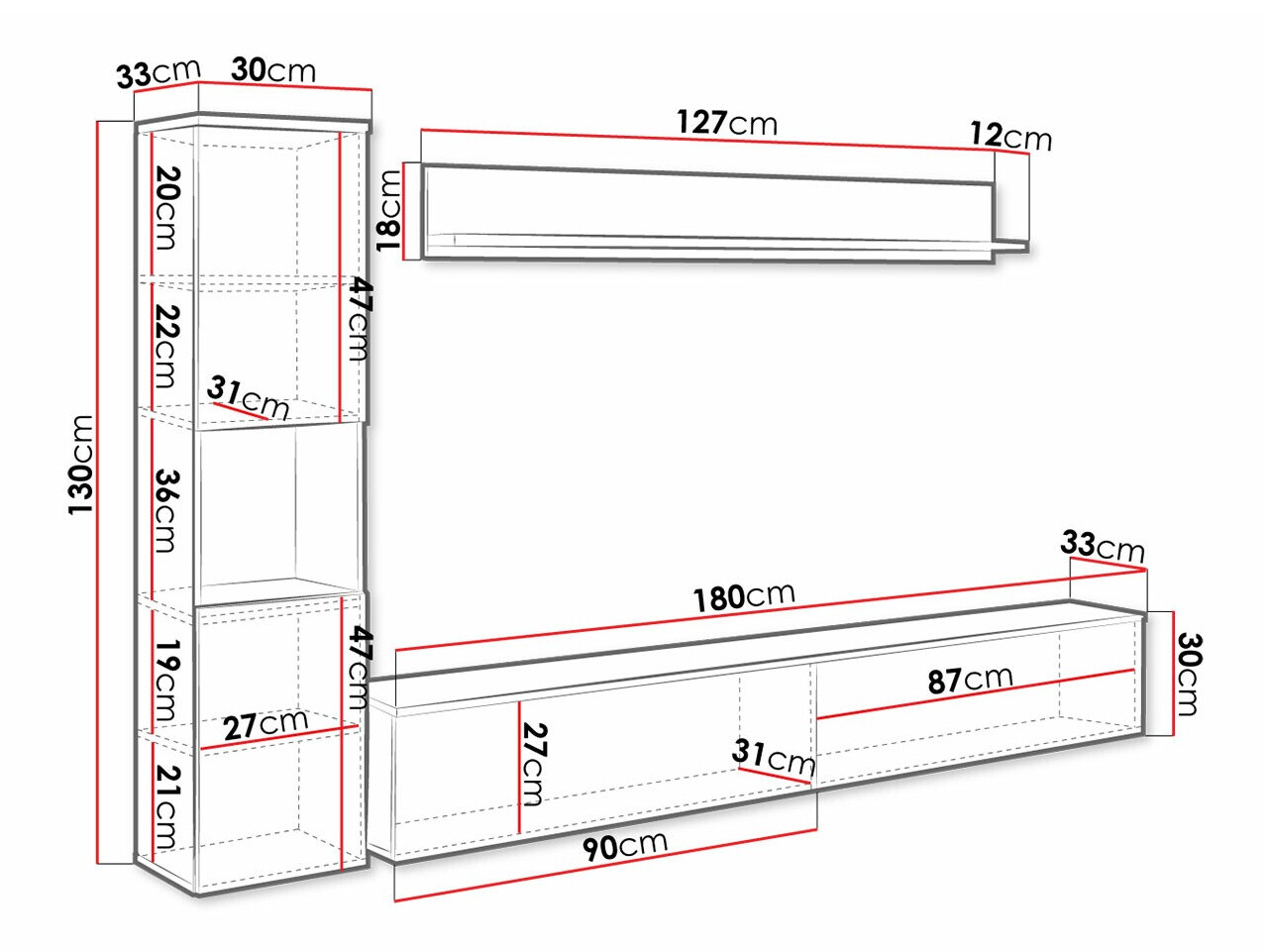Dimenzije viseće police:
