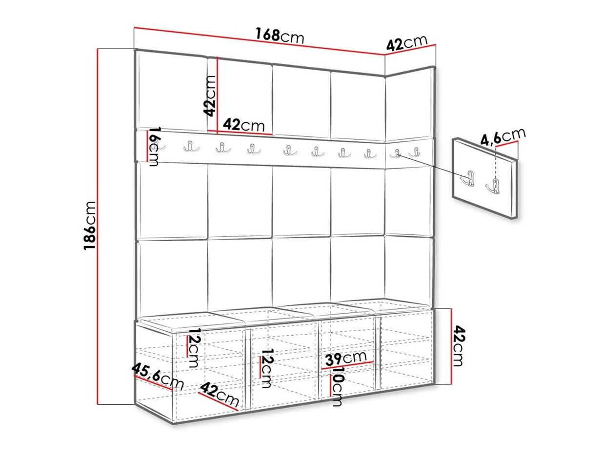 160 x 1680 x 46; 160 x 420 x 46 mm