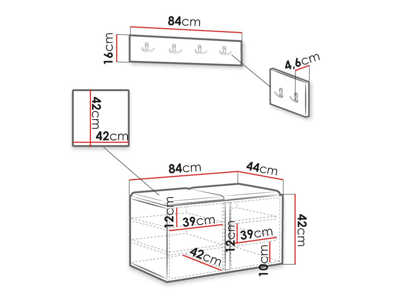 Dimenzije ormarića za cipele:
