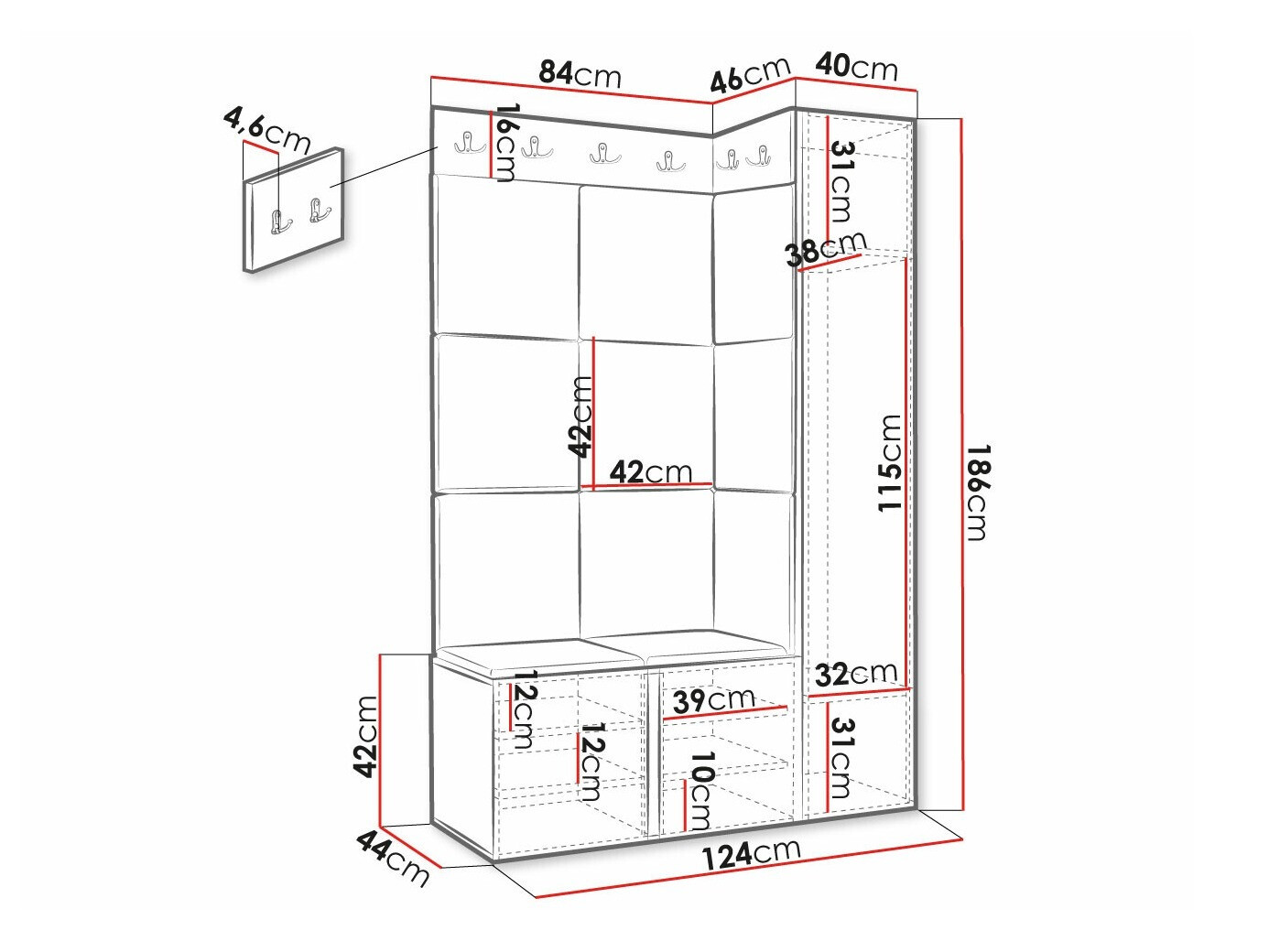 Dimenzije ormarića za cipele: