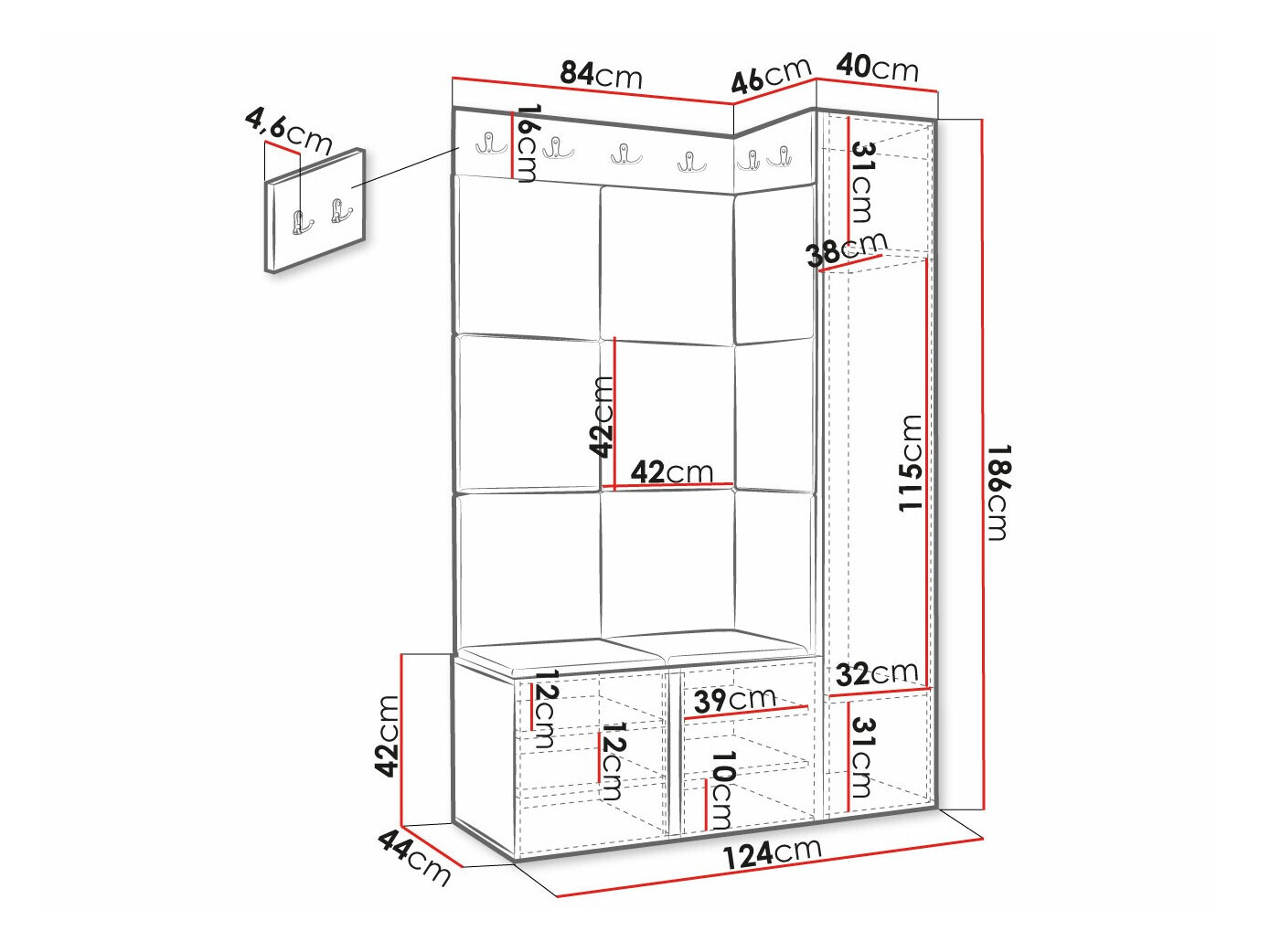Dimenzije ormarića za cipele: