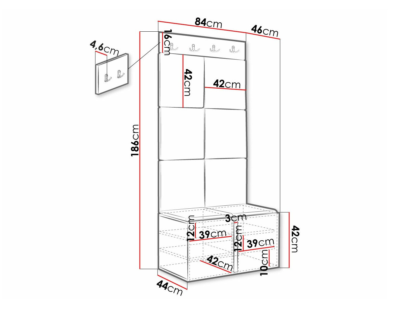 Dimenzije ormarića za cipele: